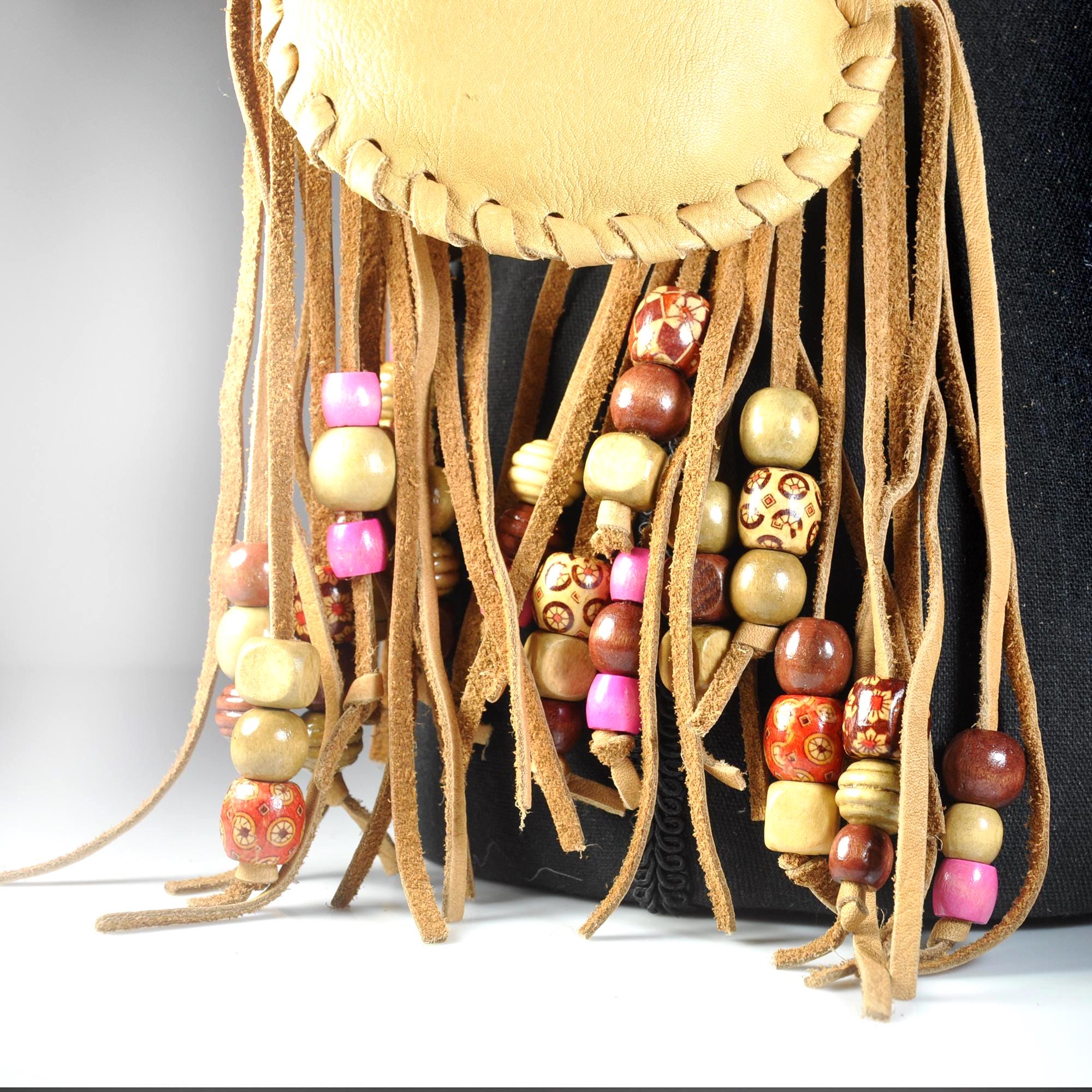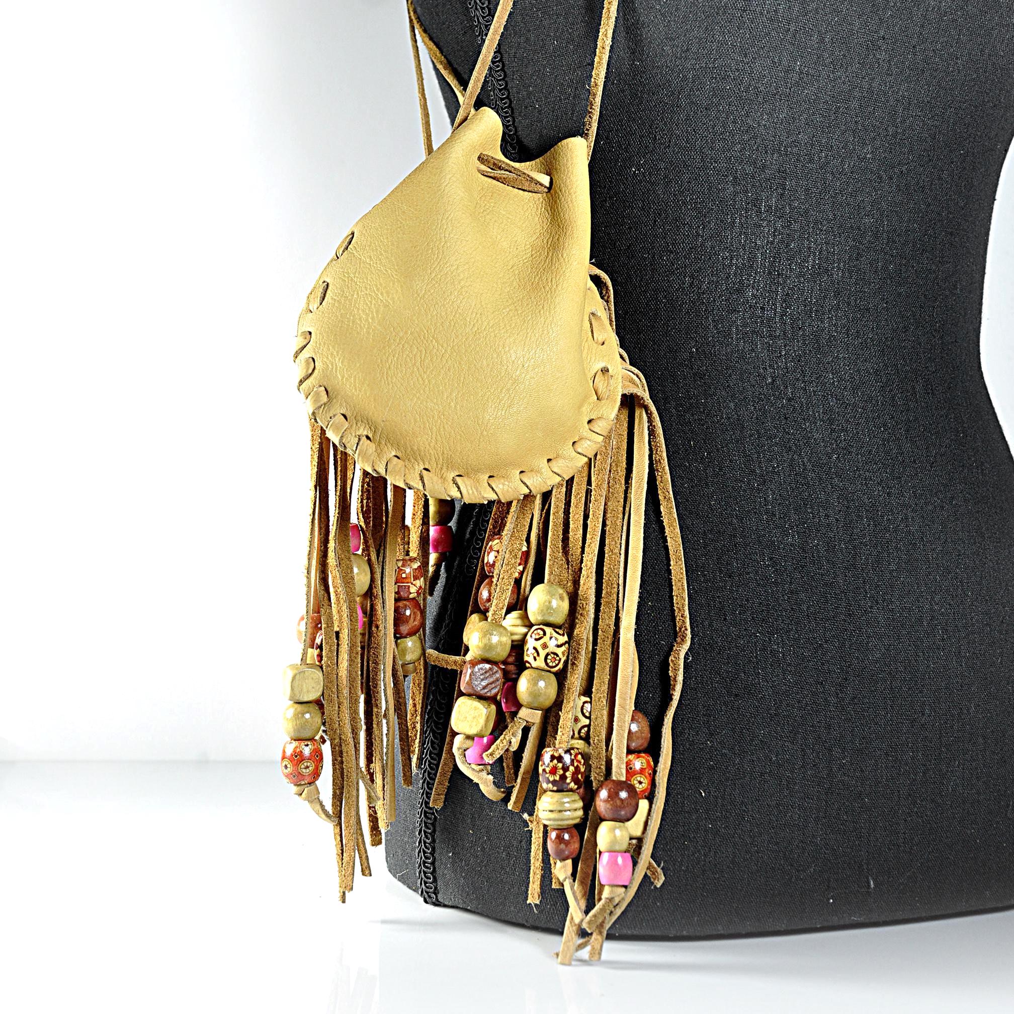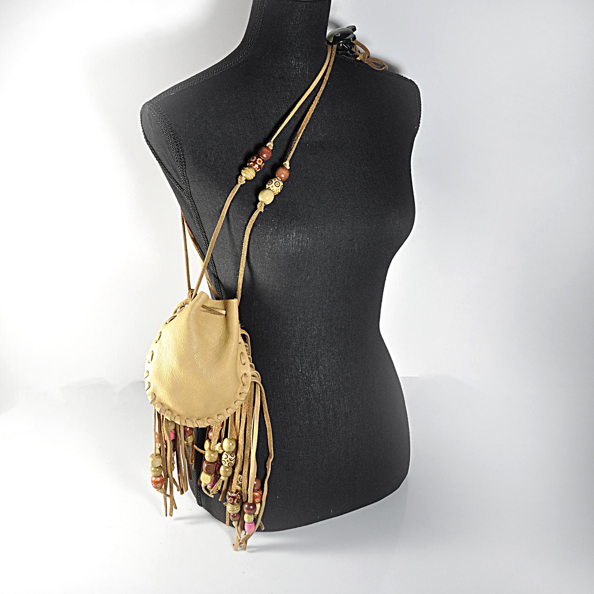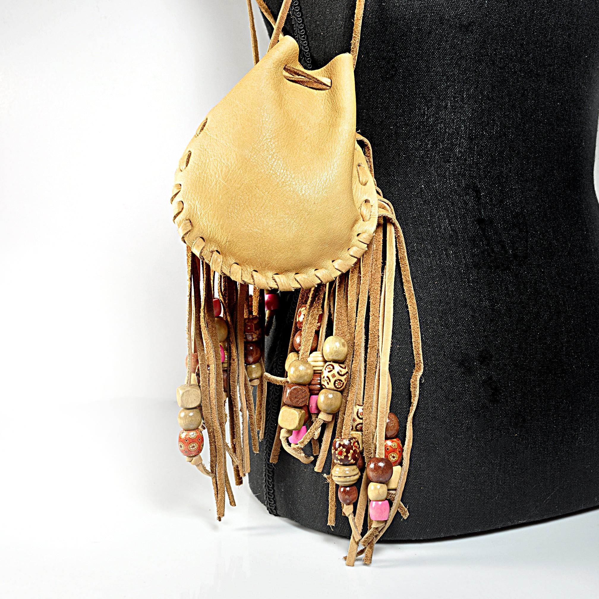 This handmade leather small crossbody bag was crafted the traditional way — by hand, not machine. The leather is extremely soft and supple, stitched together one piece at a time with care and attention to detail. No shortcuts, no factory work. The bag measures 6 inches in length by 6 inches in width, and extends to about 13 inches in total length including the hand-cut fringe. The fringe is a mixture of undecorated and decorated strands. The decorated ones have a variety of colorful beads for an extra touch of character. This is a drawstring-style bag, perfect for carrying small essentials. It can be worn crossbody, over the shoulder, or tied to a belt loop or backpack. Ideal for festivals, powwows, outdoor markets, Western wear, reenactments, or anyone who appreciates honest craftsmanship and real materials. If you believe in quality, tradition, and the value of handmade goods, this pouch was made with you in mind.