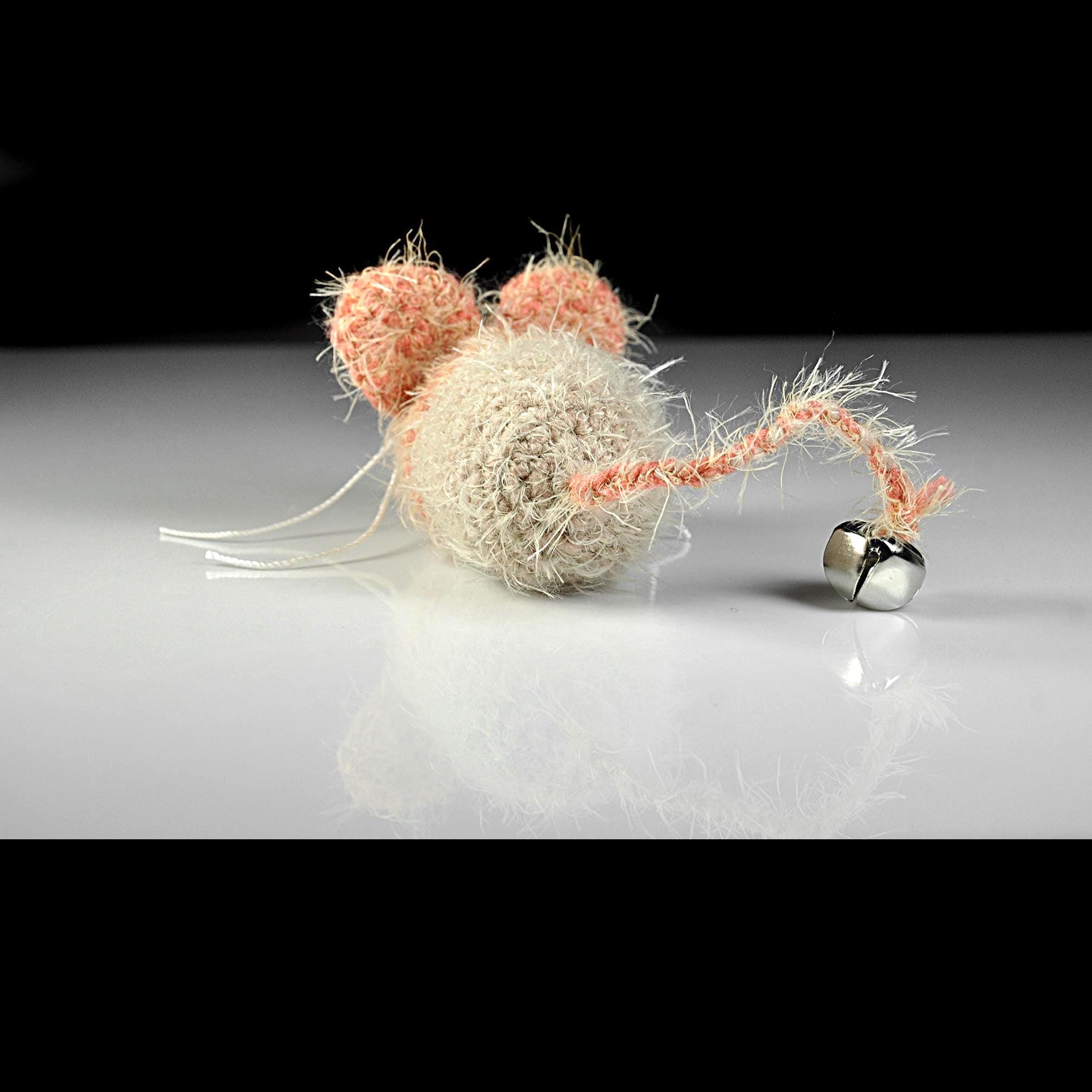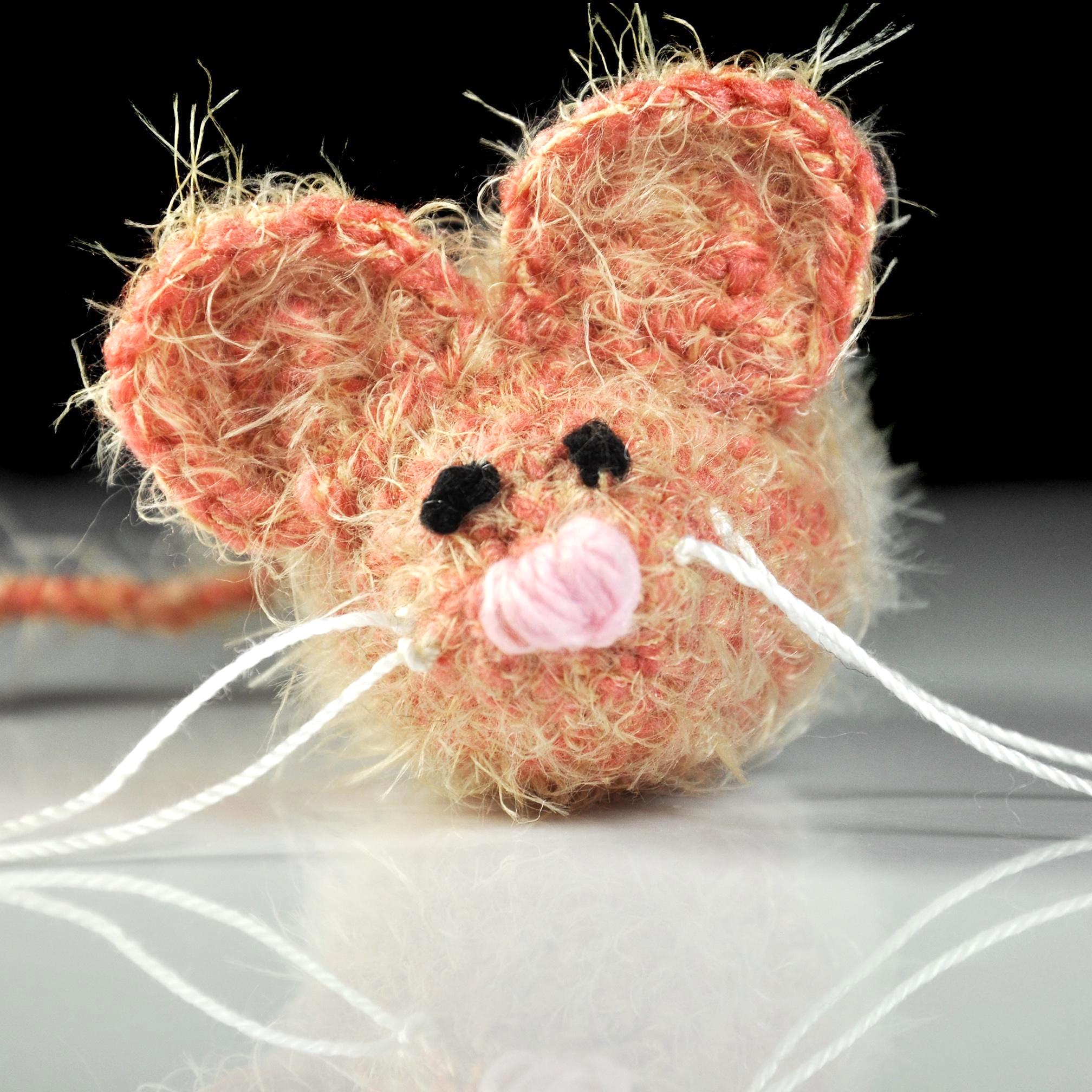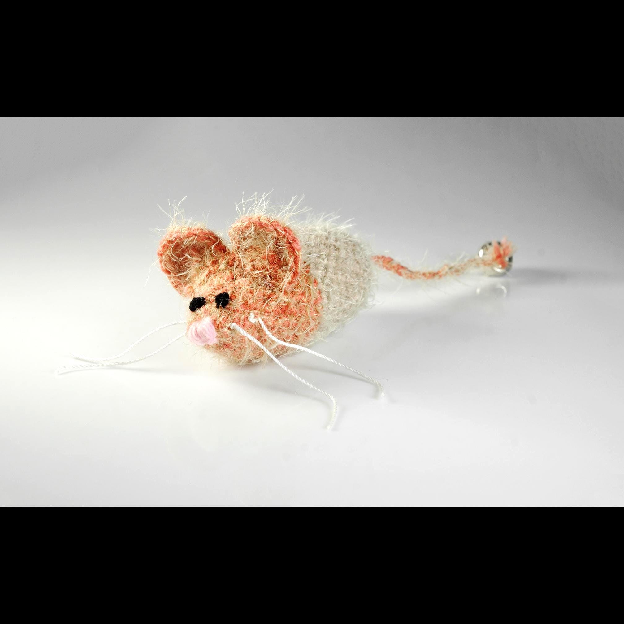 You know that quiet moment after supper when the house settles, the kettle’s still warm, and the cat is prowling around looking for mischief? That’s the time this little mouse shines. There’s something about the sound of a bell and a bit of catnip that brings out the playful side of any cat. This little mouse is handmade with care and a bit of humor — soft, fuzzy, and full of the good stuff that keeps kitties coming back for more. Each one is crocheted with soft, fuzzy Caron Latte Cakes yarn in shades of orange and tan, the same cozy yarn that makes scarves and blankets you want to curl up with. The face is finished with pink and black yarn and white crochet cotton whiskers, giving it that playful look cats can’t resist. The tail curls with a bit of bounce, ending in a small stainless-steel bell that jingles softly as your cat bats it across the floor. Whether your cat is a sprinter, a stalker, or a nap-between-plays type, this little mouse will keep them busy.