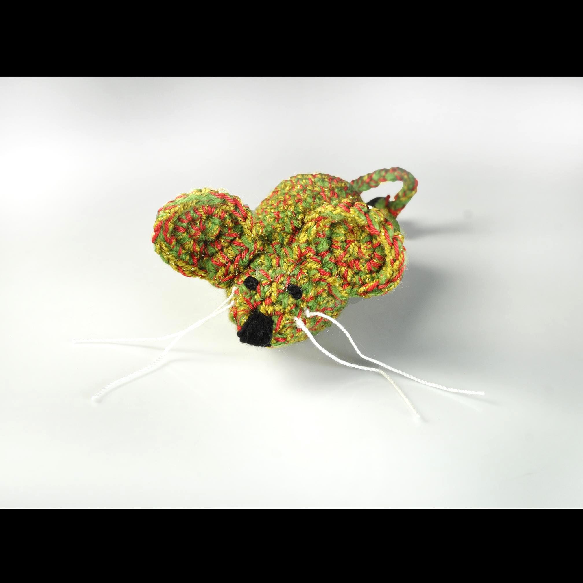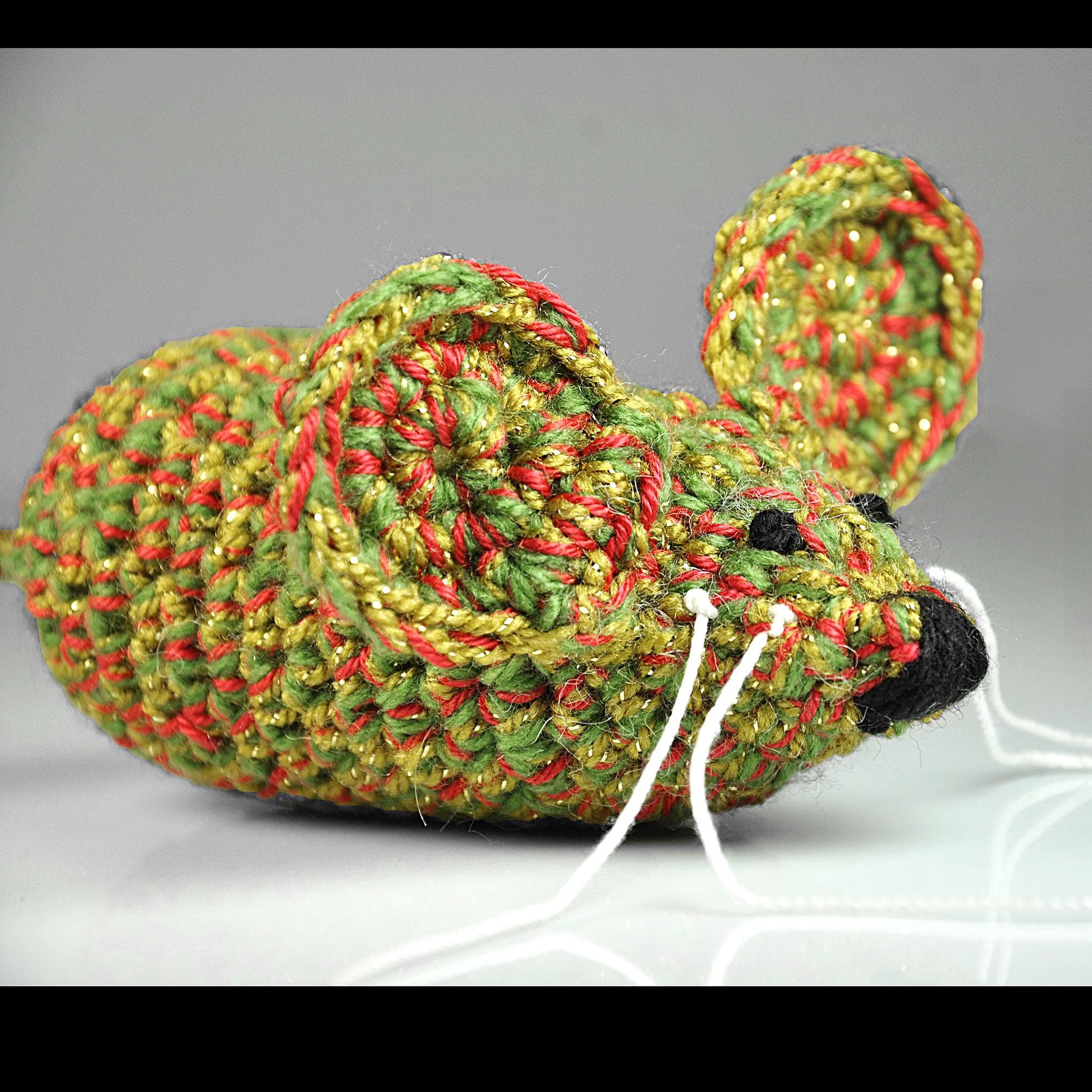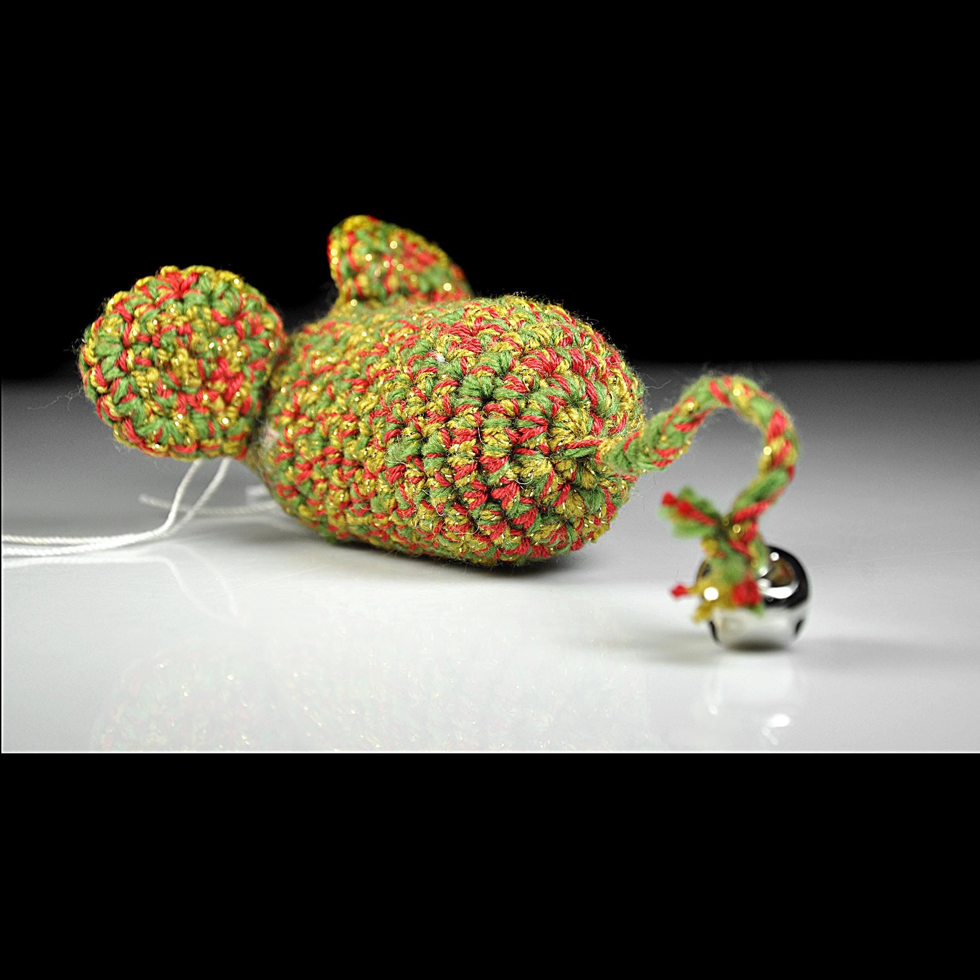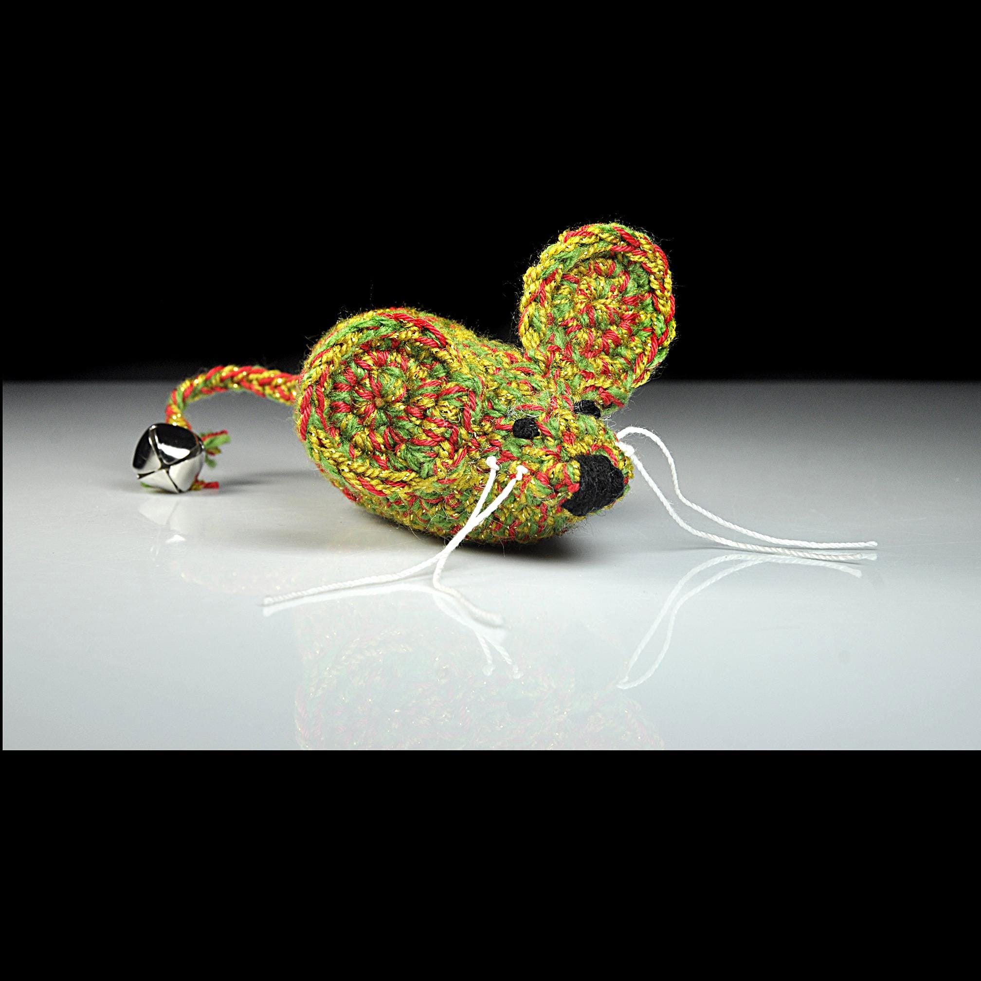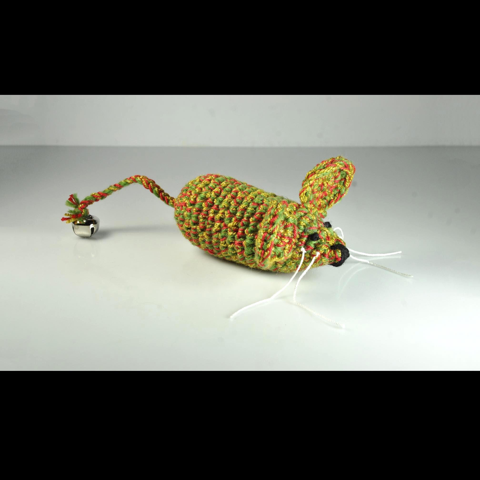 Around here, the holidays aren’t just for the two-legged folks — the cats expect their fun, too. This little Christmas mouse is one I crocheted by hand using green, red, and gold yarn, with a touch of metallic sparkle worked in. It’s sturdy, tightly stitched, and has just enough charm to catch a kitty’s eye. Inside, I’ve used Cat Crack Organic Catnip from Canada. I’m not connected to the company in any way — it’s simply the brand I trust after trying more than a few. It’s fresh, strong, and all-natural, and it keeps the toy interesting long after the first pounce. A small jingle bell is tied to the end of the tail, giving your cat that bit of extra excitement when they bat it around.