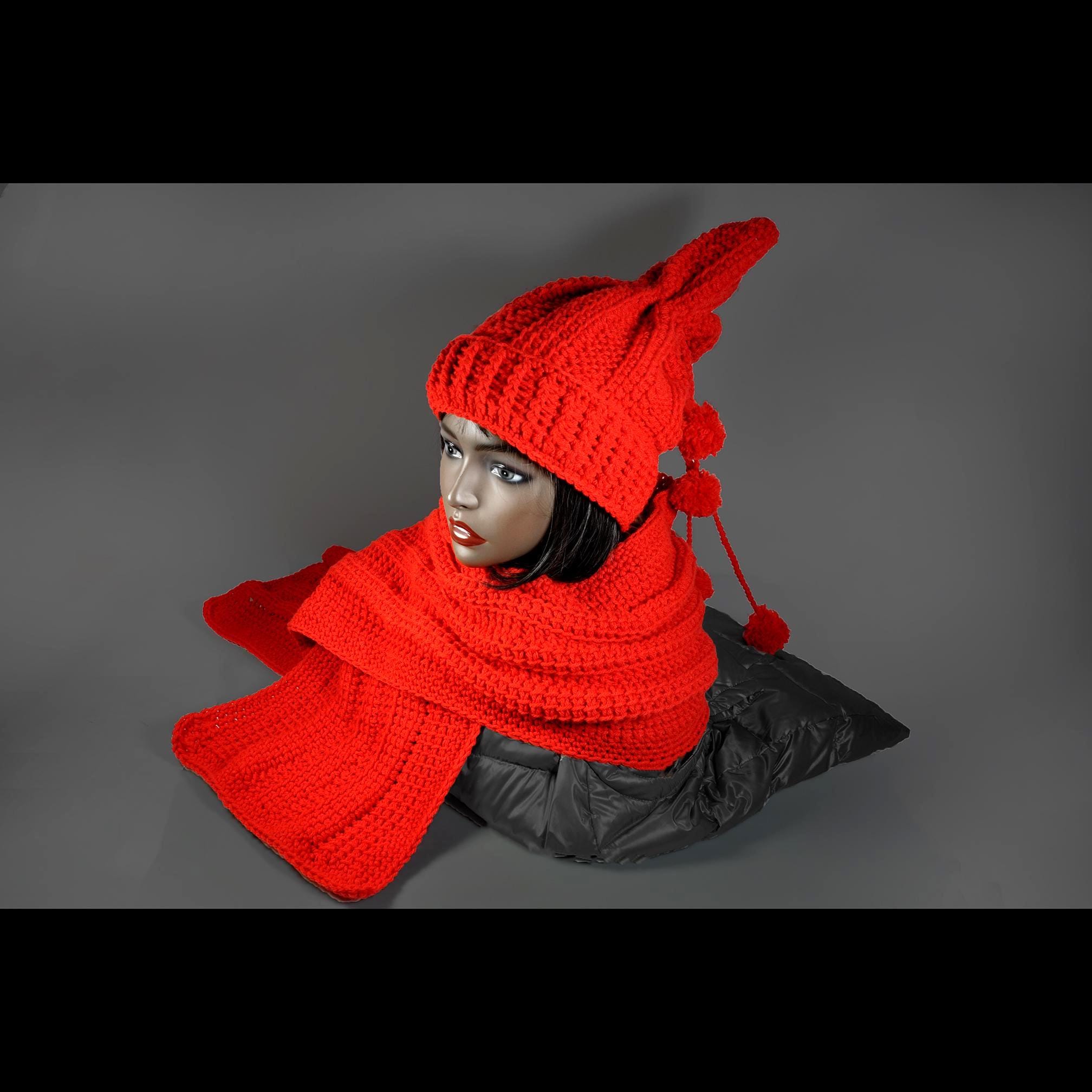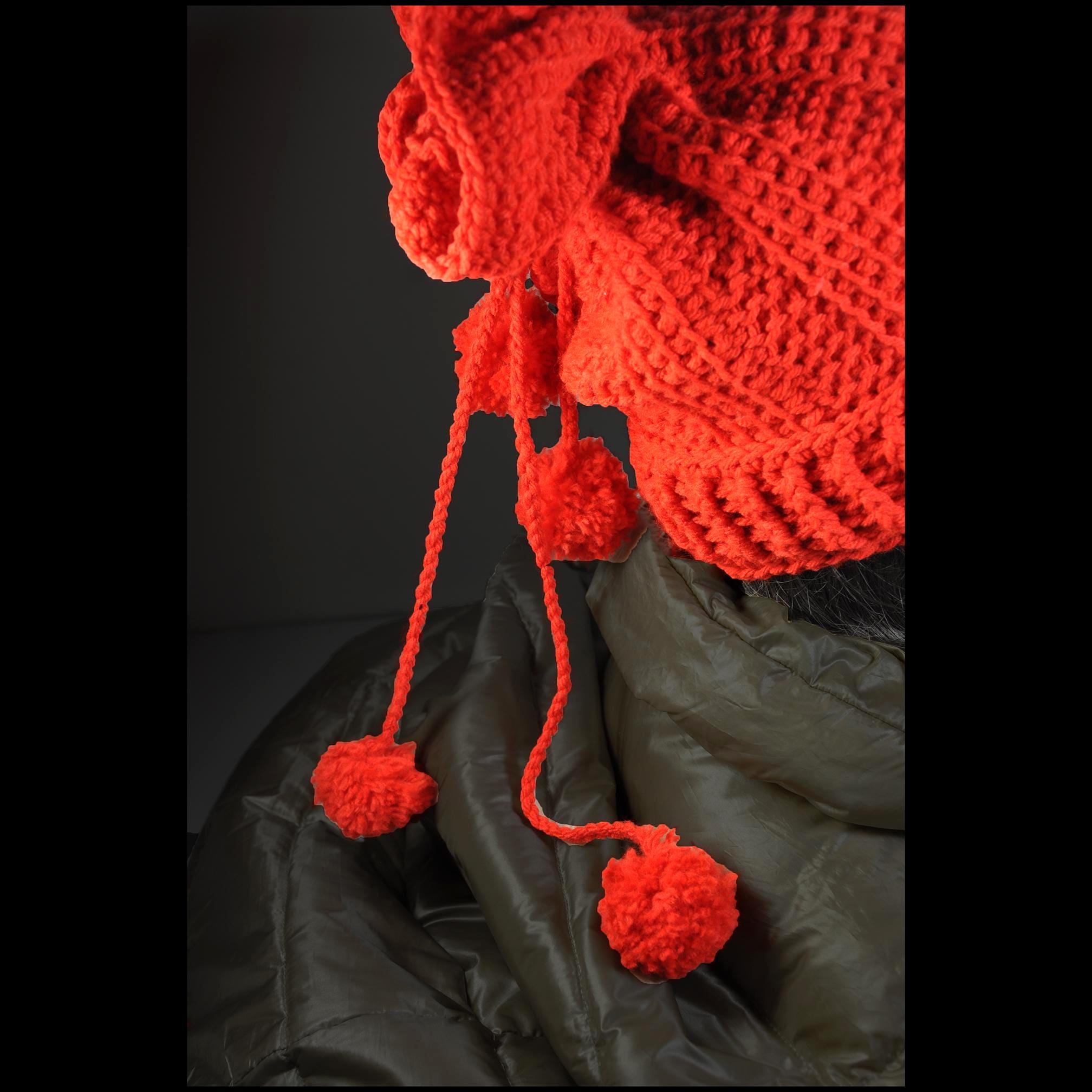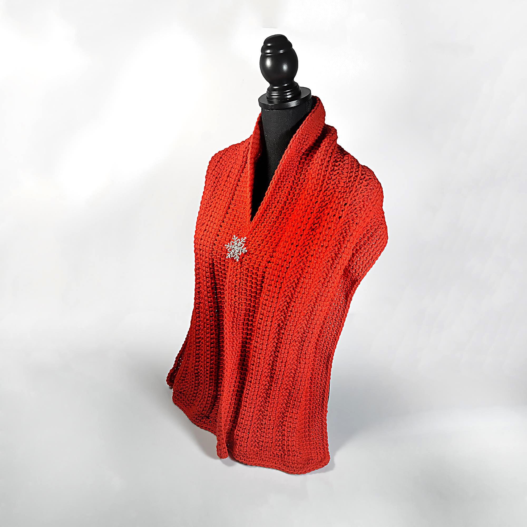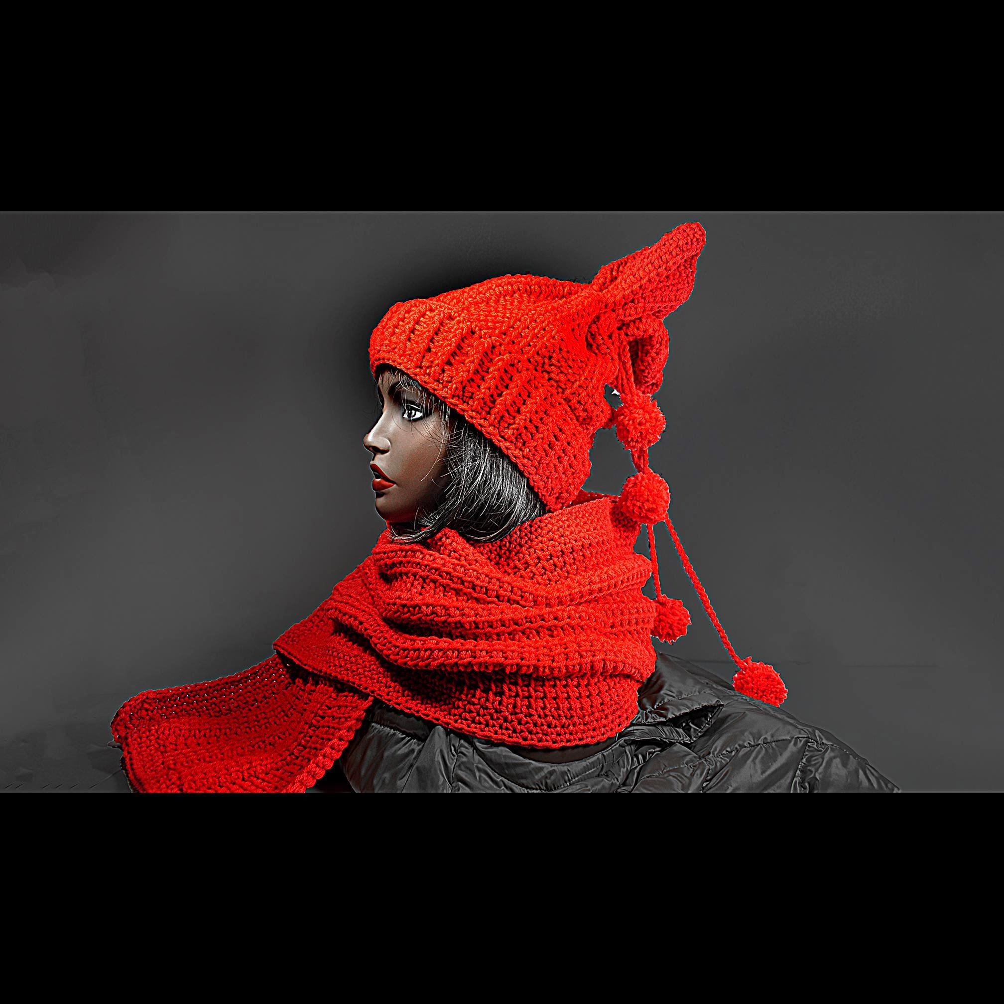 This hat and scarf set was made slowly, stitch by stitch, using Tunisian crochet, a technique that gives fabric real body and warmth. It’s not floppy, and it’s not thin. This is the kind of winter set you actually reach for when the cold settles in. The yarn is Caron 100% acrylic in Scarlet, a true bright red that’s hard to photograph but beautiful in person. It holds its color, keeps its shape, and is easy to care for—no fuss, no special handling. I chose it on purpose, especially for people who can’t wear wool. The hat has a soft slouch with long ties and handmade pom-poms for a bit of personality, while still being completely wearable. The scarf is generously sized so it can be wrapped, layered, or worn loose without feeling skimpy. This is a coordinated set, not mix-and-match leftovers. Made together, meant to be worn together, and built to last more than one winter.