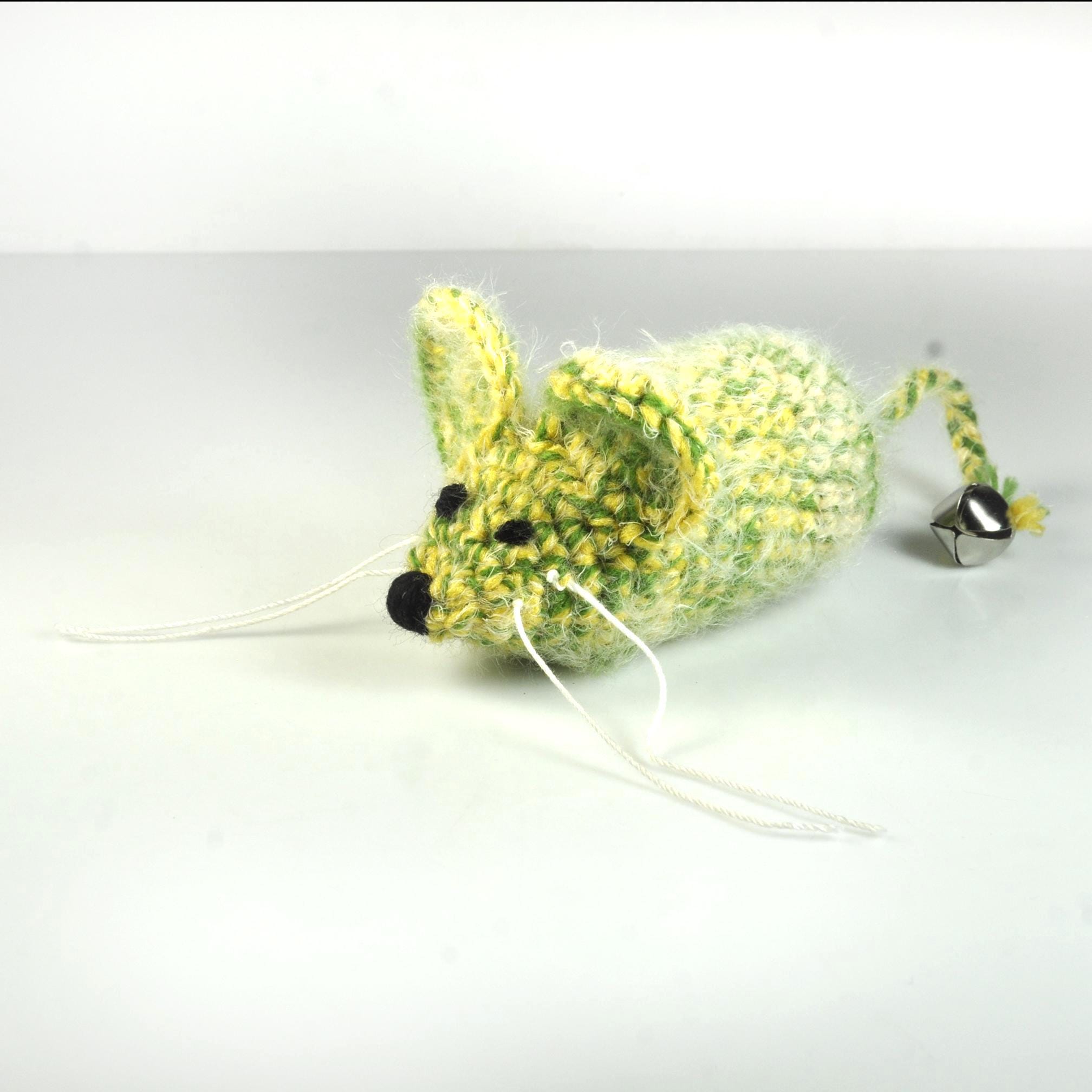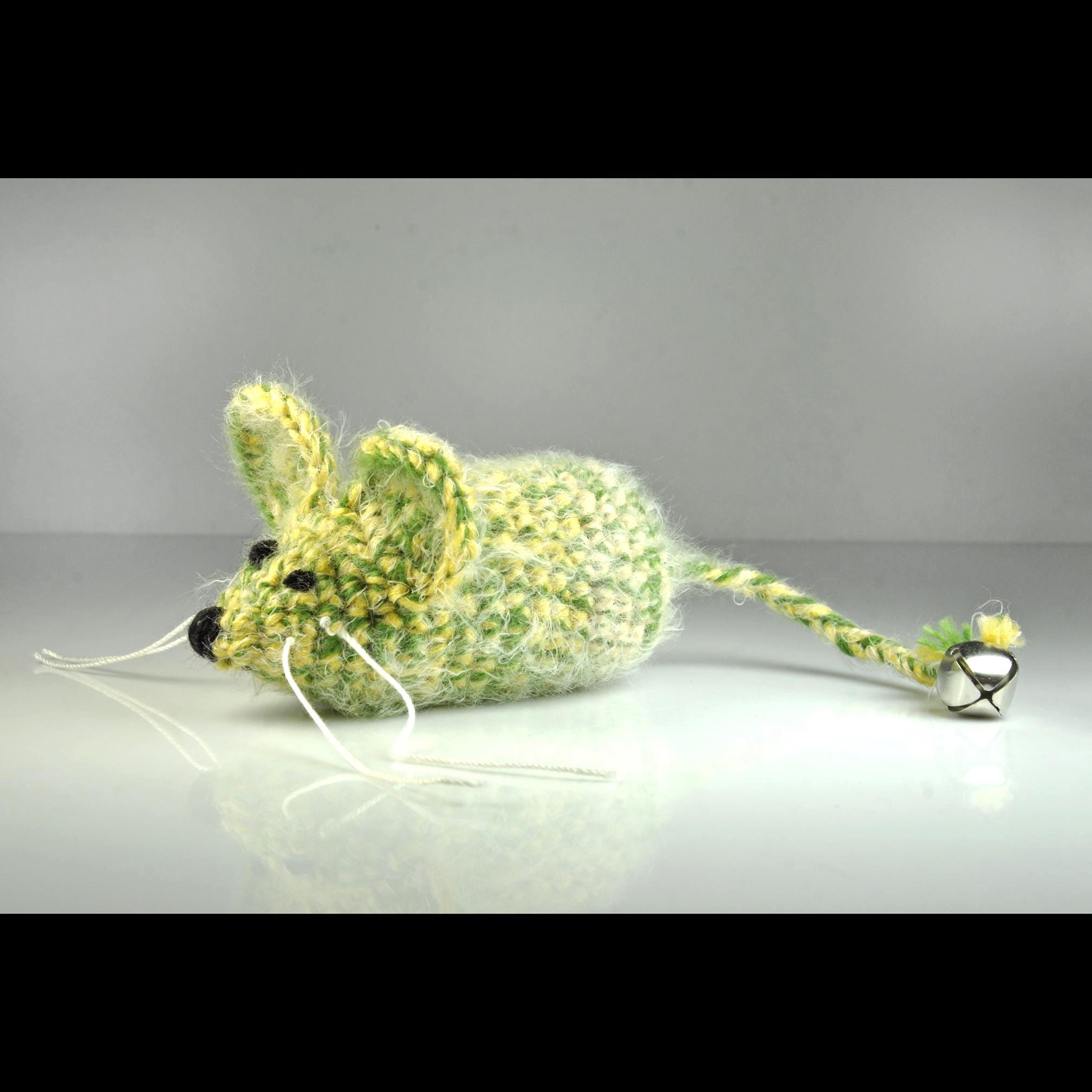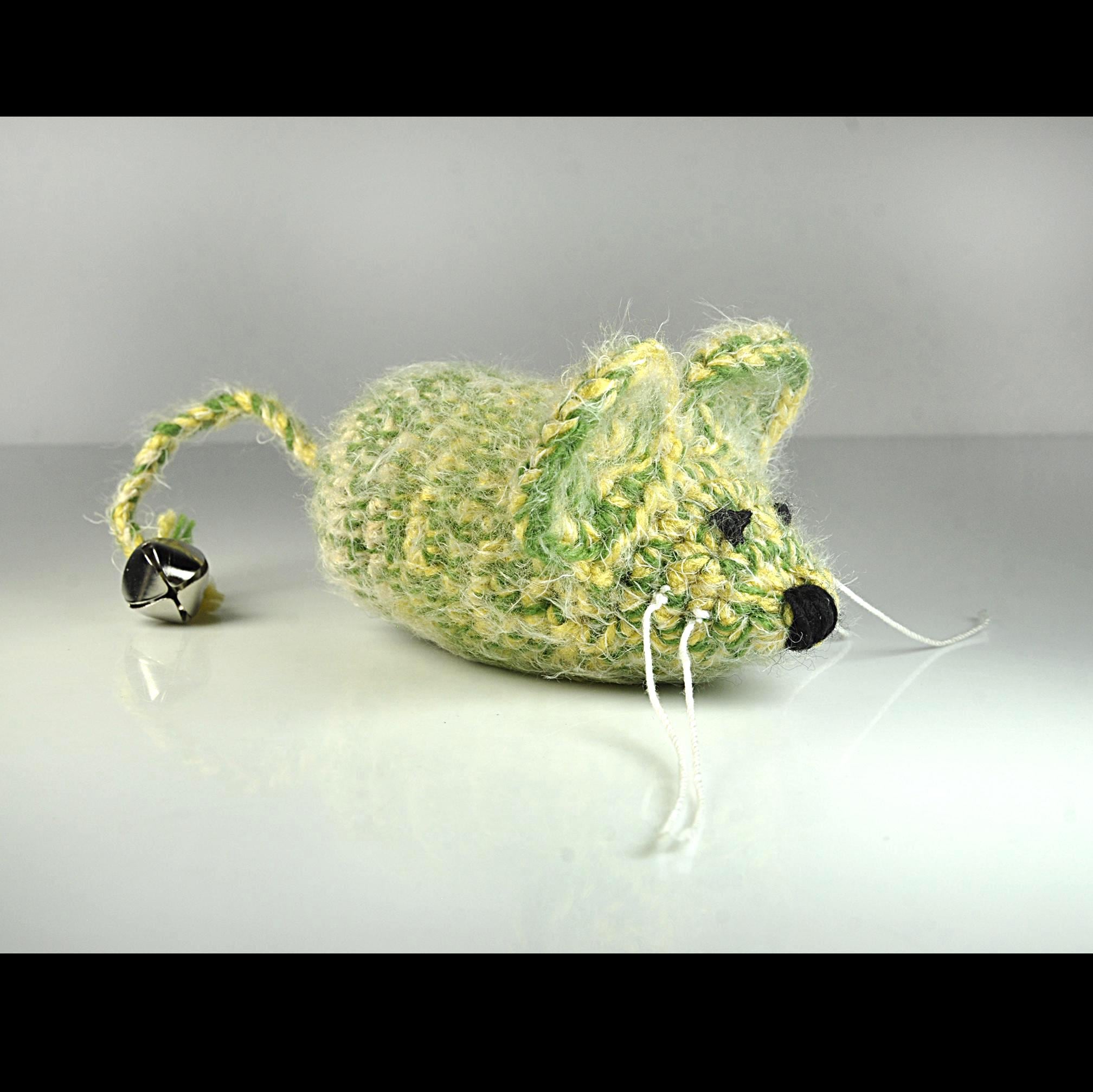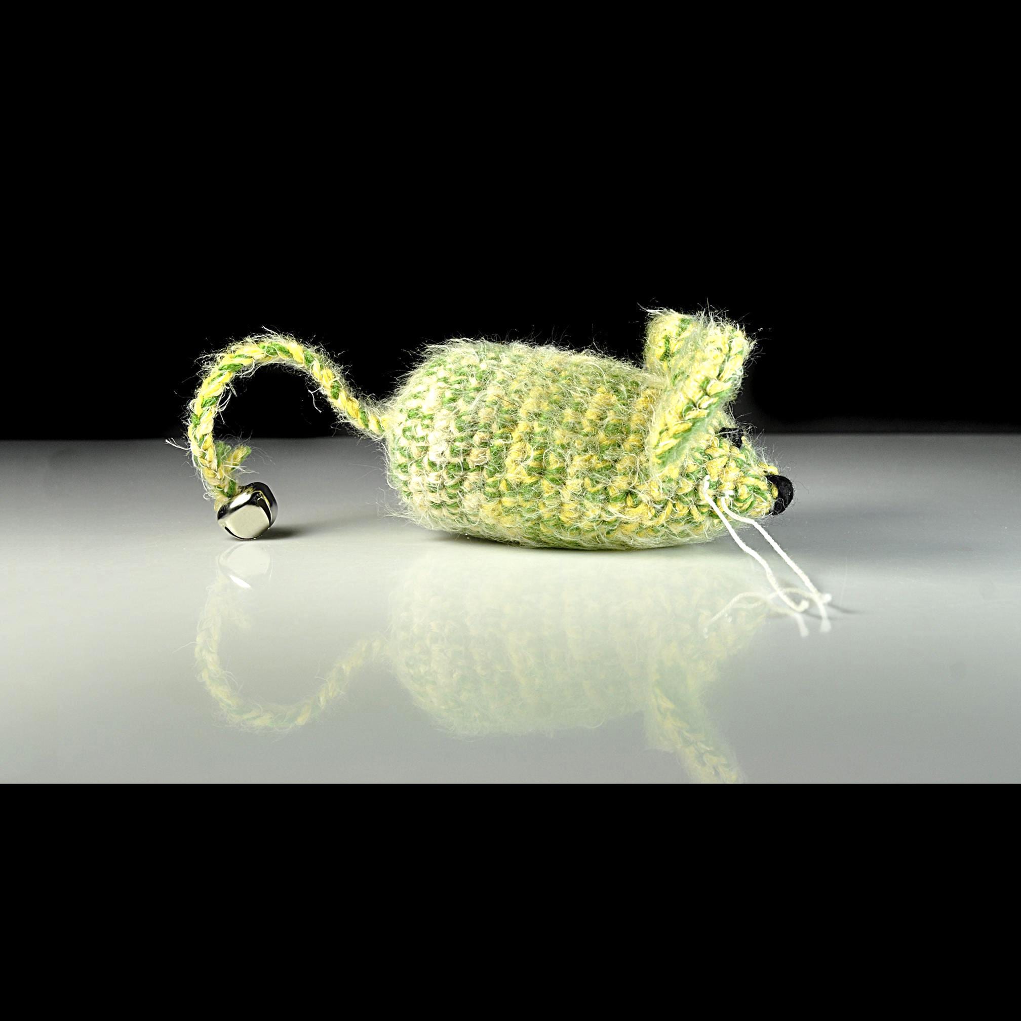This little mouse has been very well fed — and your cat is going to love it. Each mouse is crocheted by hand using sturdy Caron yarn, then generously filled with premium fiberfill and organic catnip from Canada (the good stuff — the kind cats go absolutely wild for). I’ve tried plenty over the years, and this is hands-down the best I’ve found. The braided tail ends in a stainless steel bell for sound and movement that keeps cats interested, while the soft crocheted body is easy to grab, kick, and toss. The eyes and nose are stitched with yarn — no plastic parts — and the whiskers are crochet cotton for a little extra character. Perfect for batting, pouncing, bunny-kicking, and carrying off to secret hiding spots. Each mouse is handmade, so no two are exactly alike — just like real prey, according to your cat.