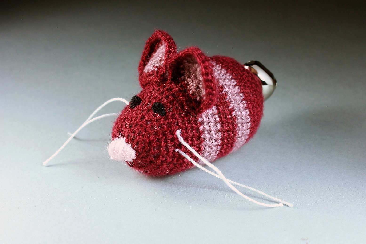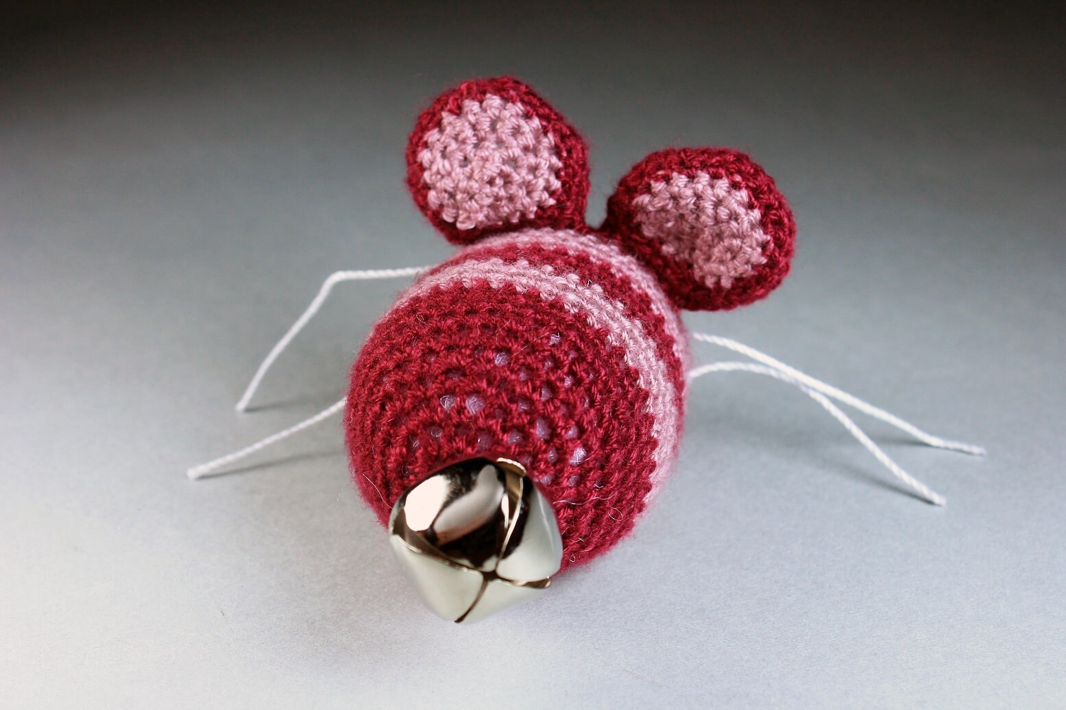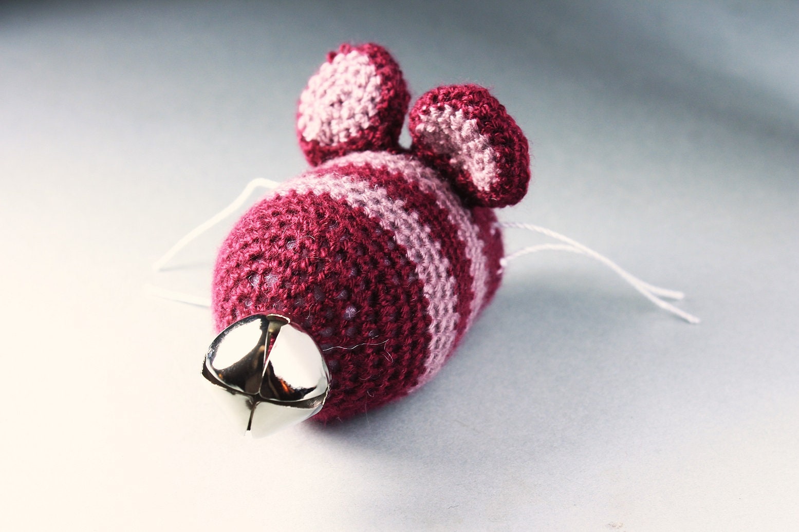 Catnip Toy Mouse, Mouse With Bell, Pink, Crocheted, Pet Toy, Organic Catnip, Pet Accessory
