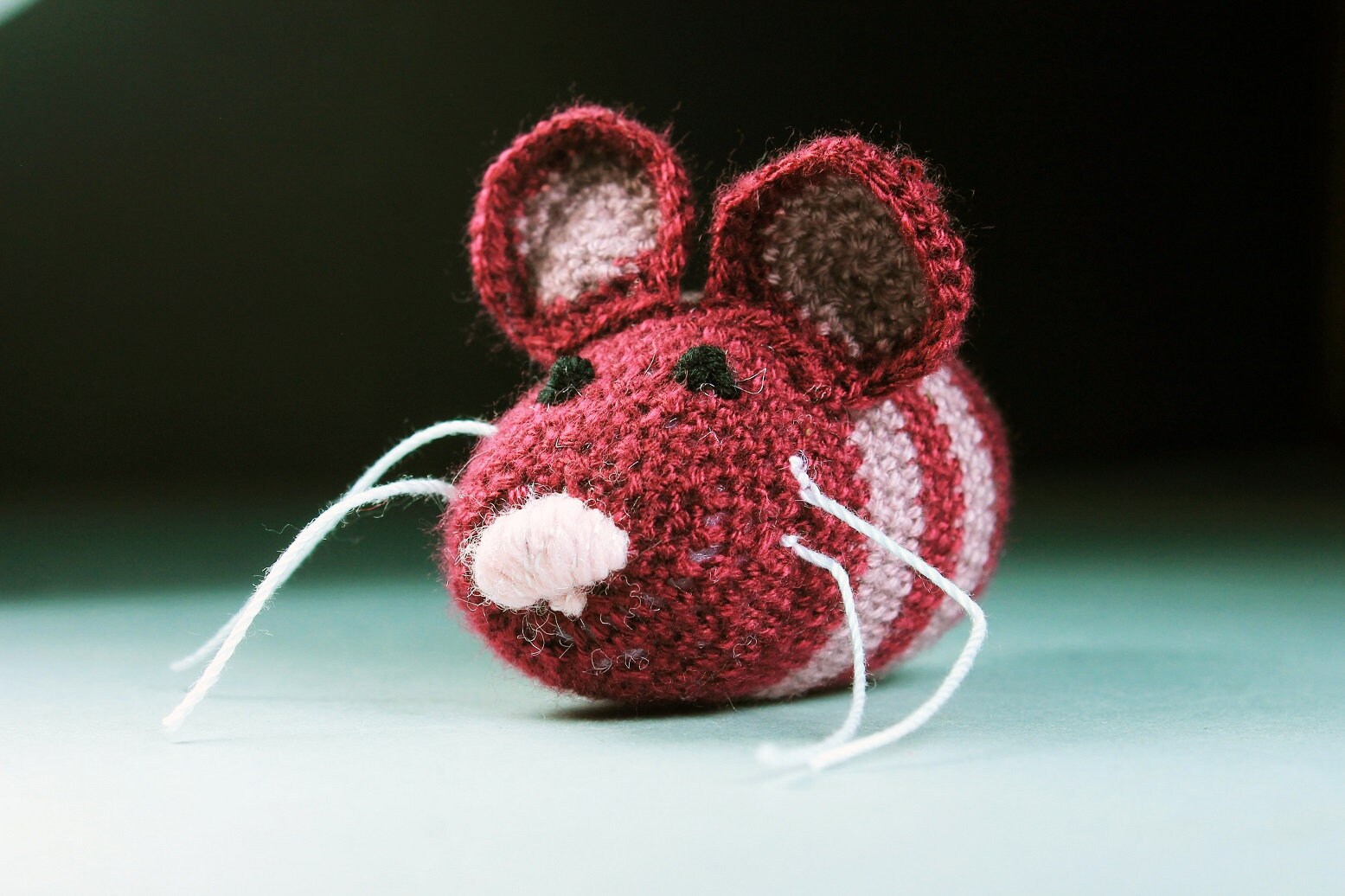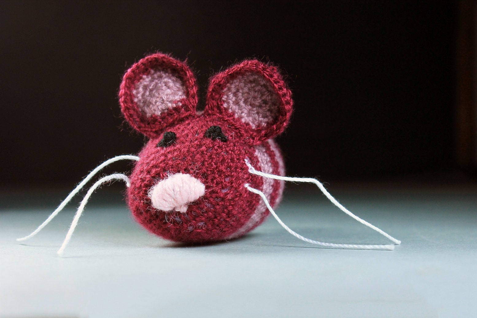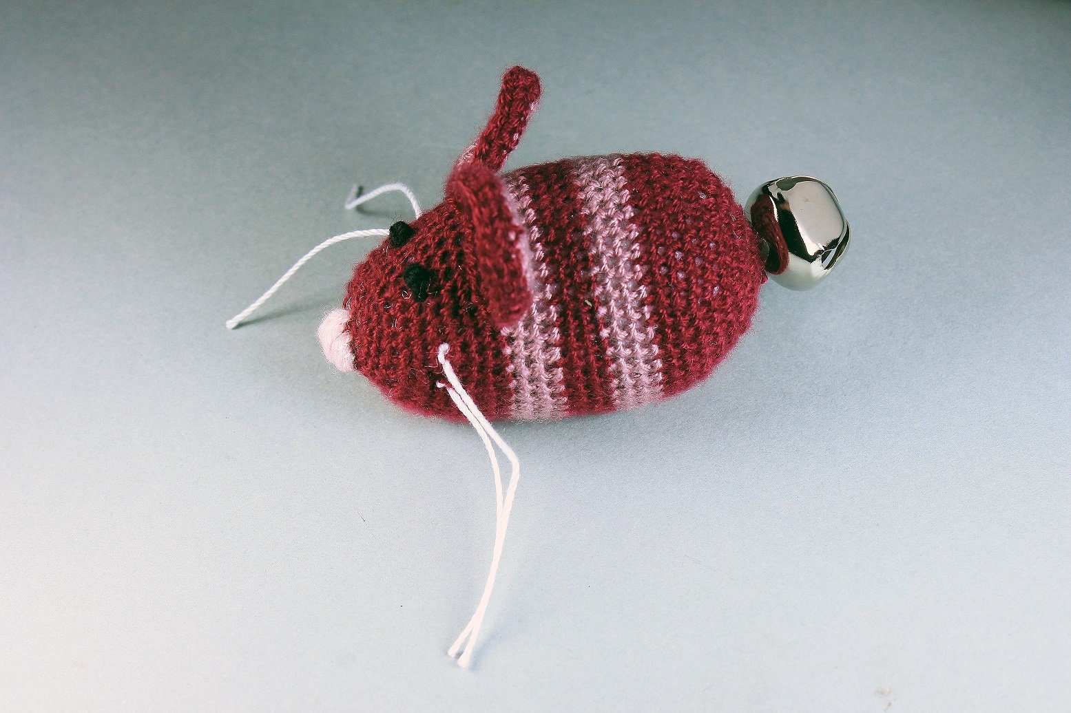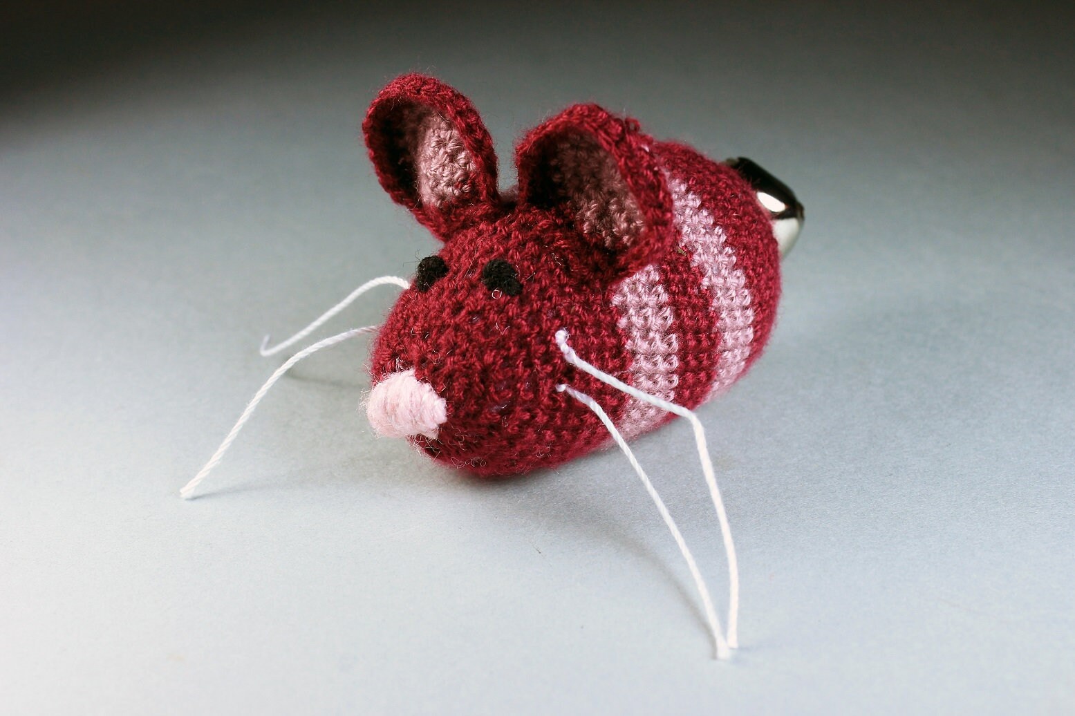 Catnip Toy Mouse, Mouse With Bell, Pink, Crocheted, Pet Toy, Organic Catnip, Pet Accessory