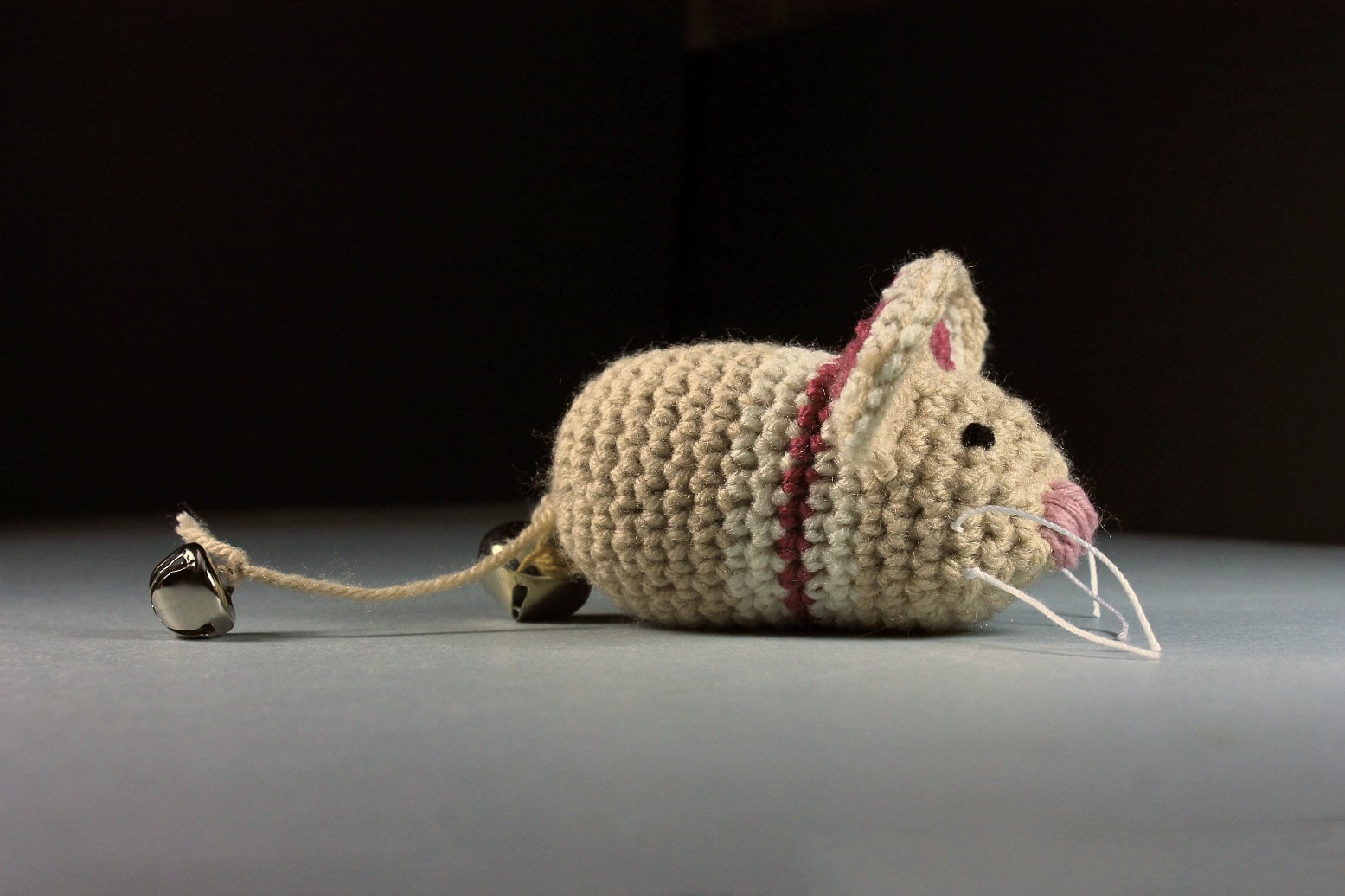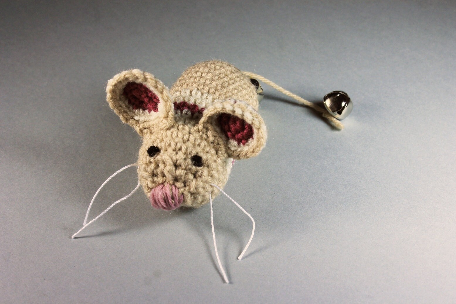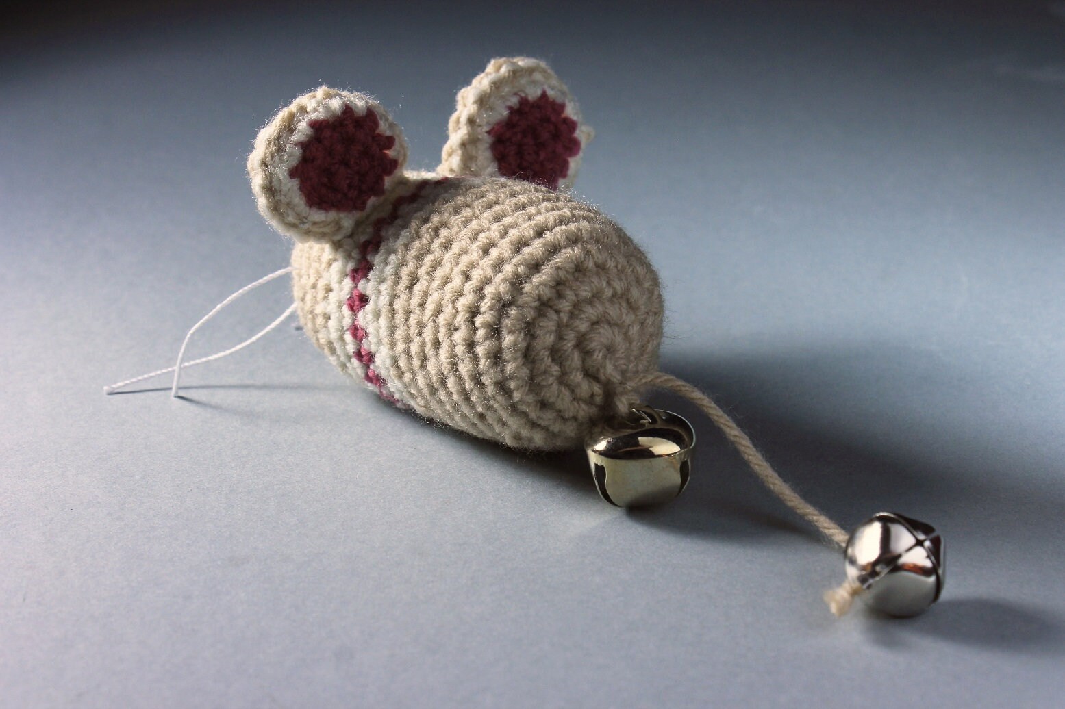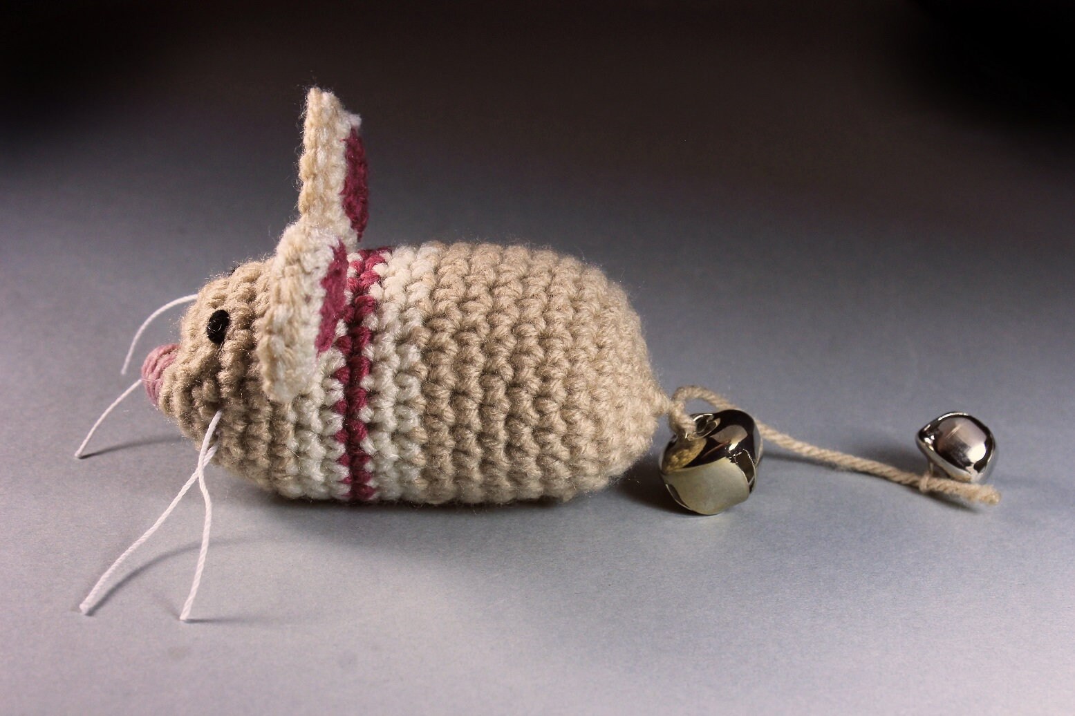 Catnip Toy Mouse, Mouse With Bell, Beige with Stripes, Crocheted, Pet Toy, Organic Cat Nip, Pet Accessory
