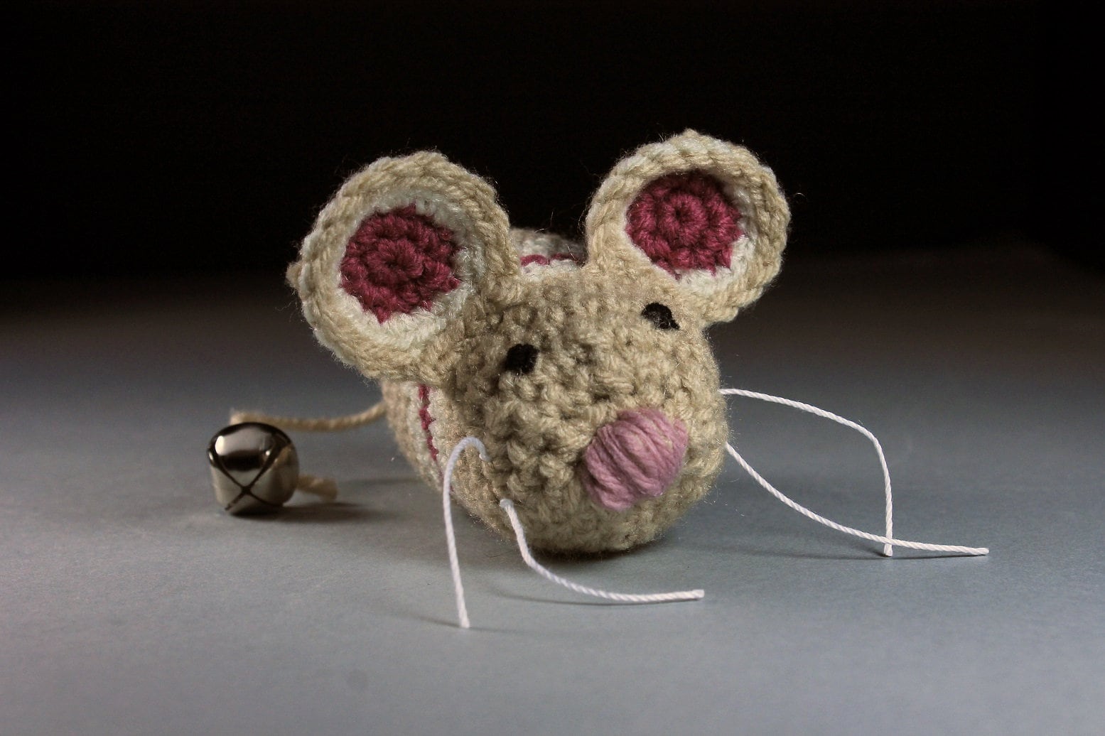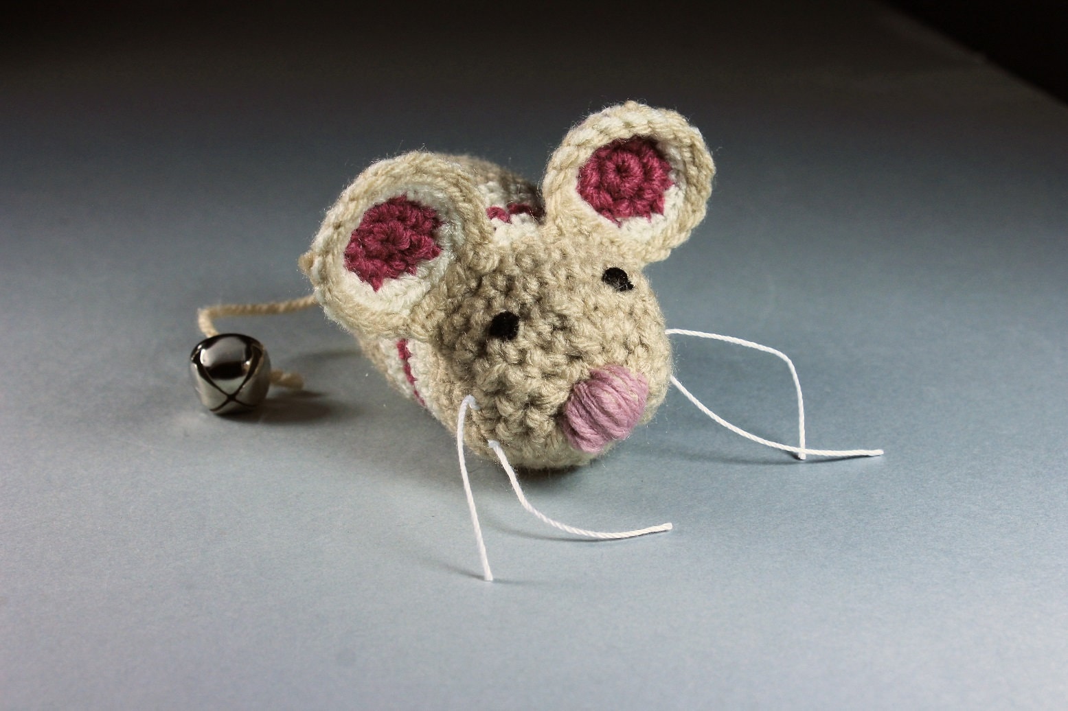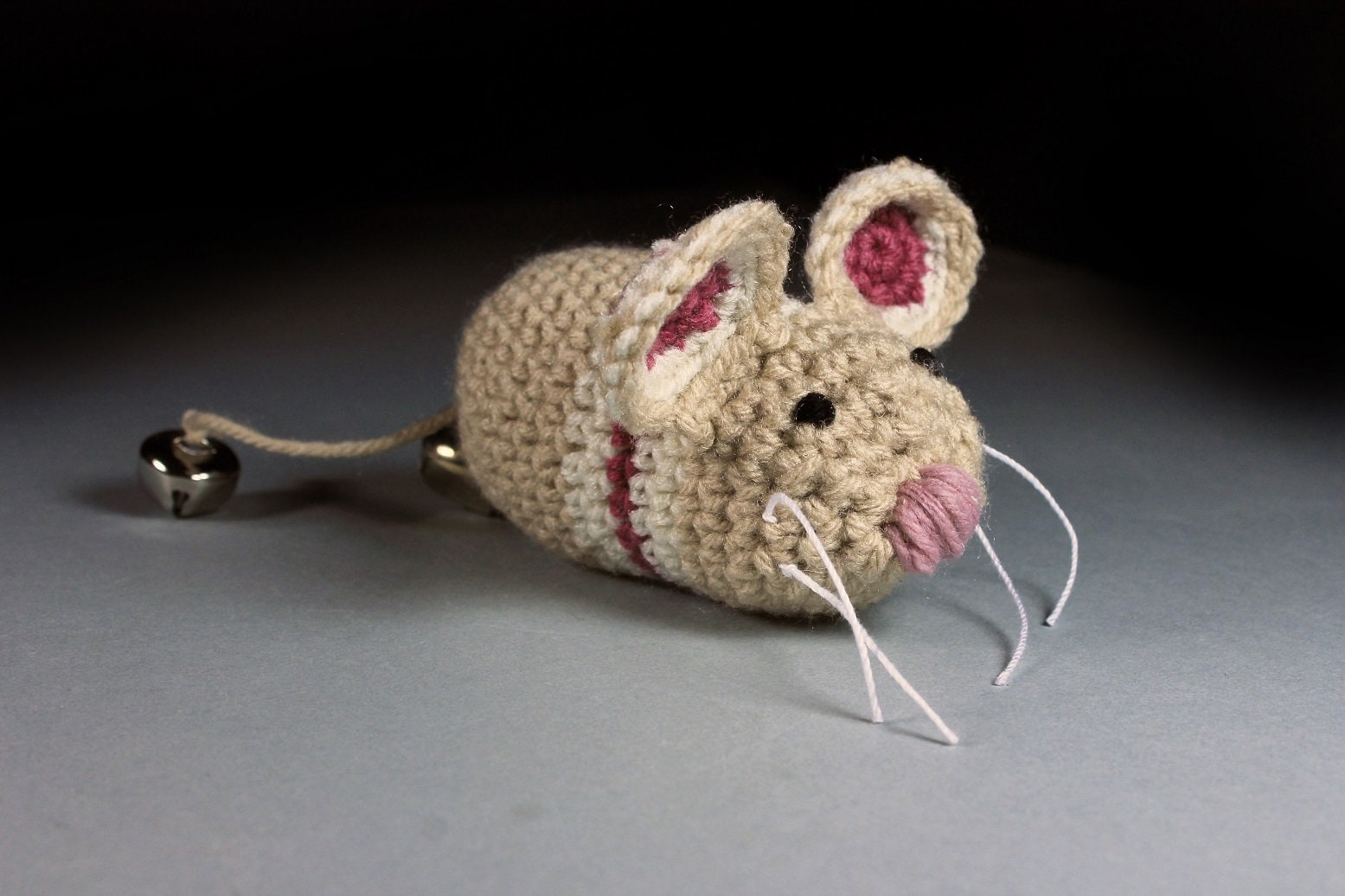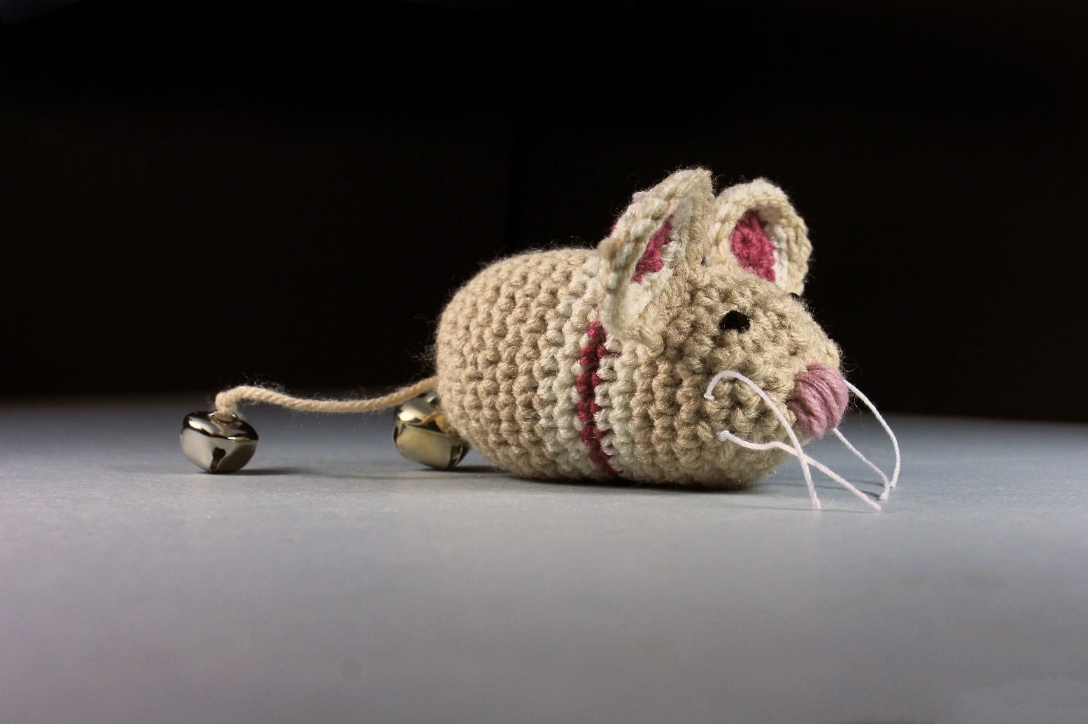 Catnip Toy Mouse, Mouse With Bell, Beige with Stripes, Crocheted, Pet Toy, Organic Cat Nip, Pet Accessory