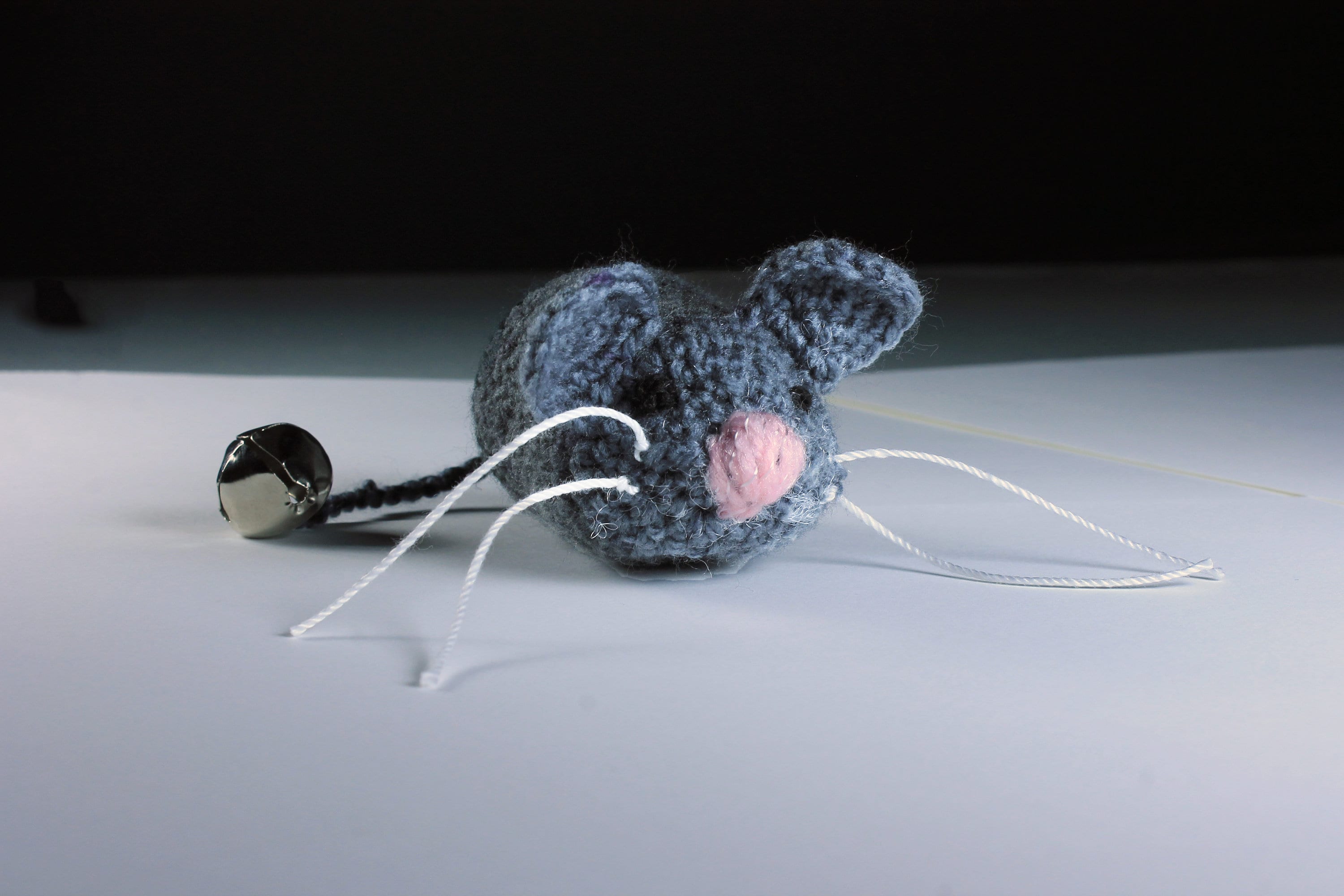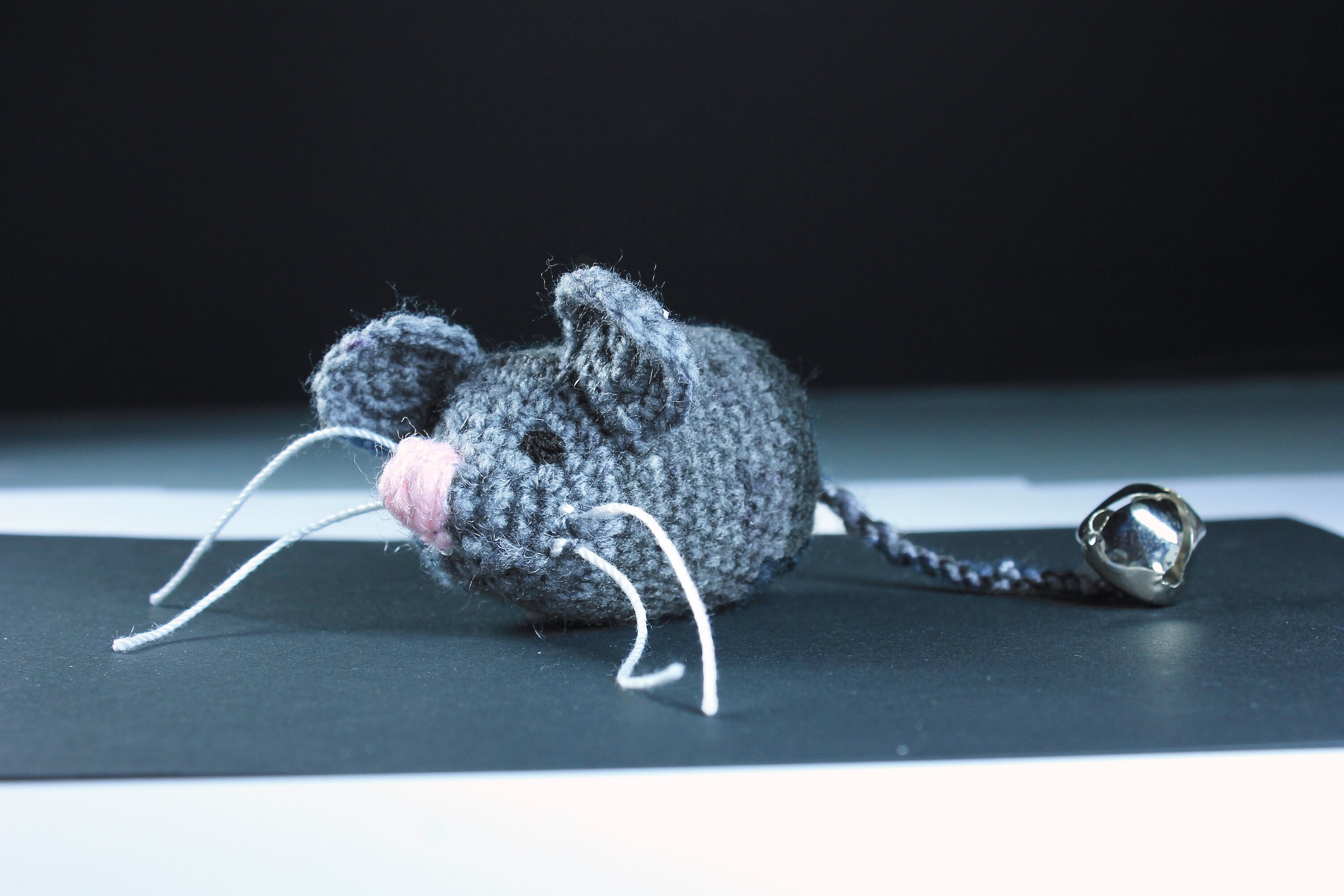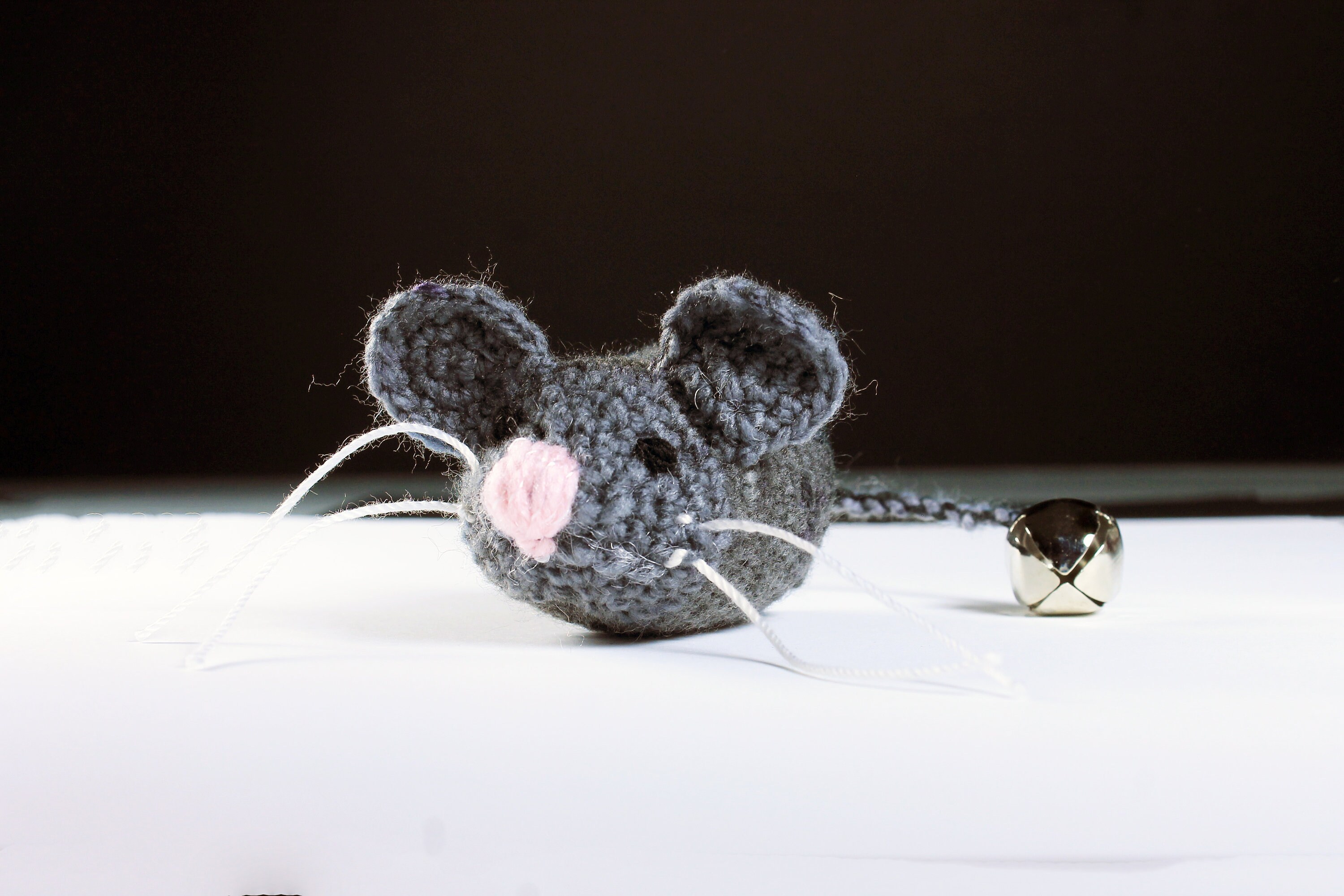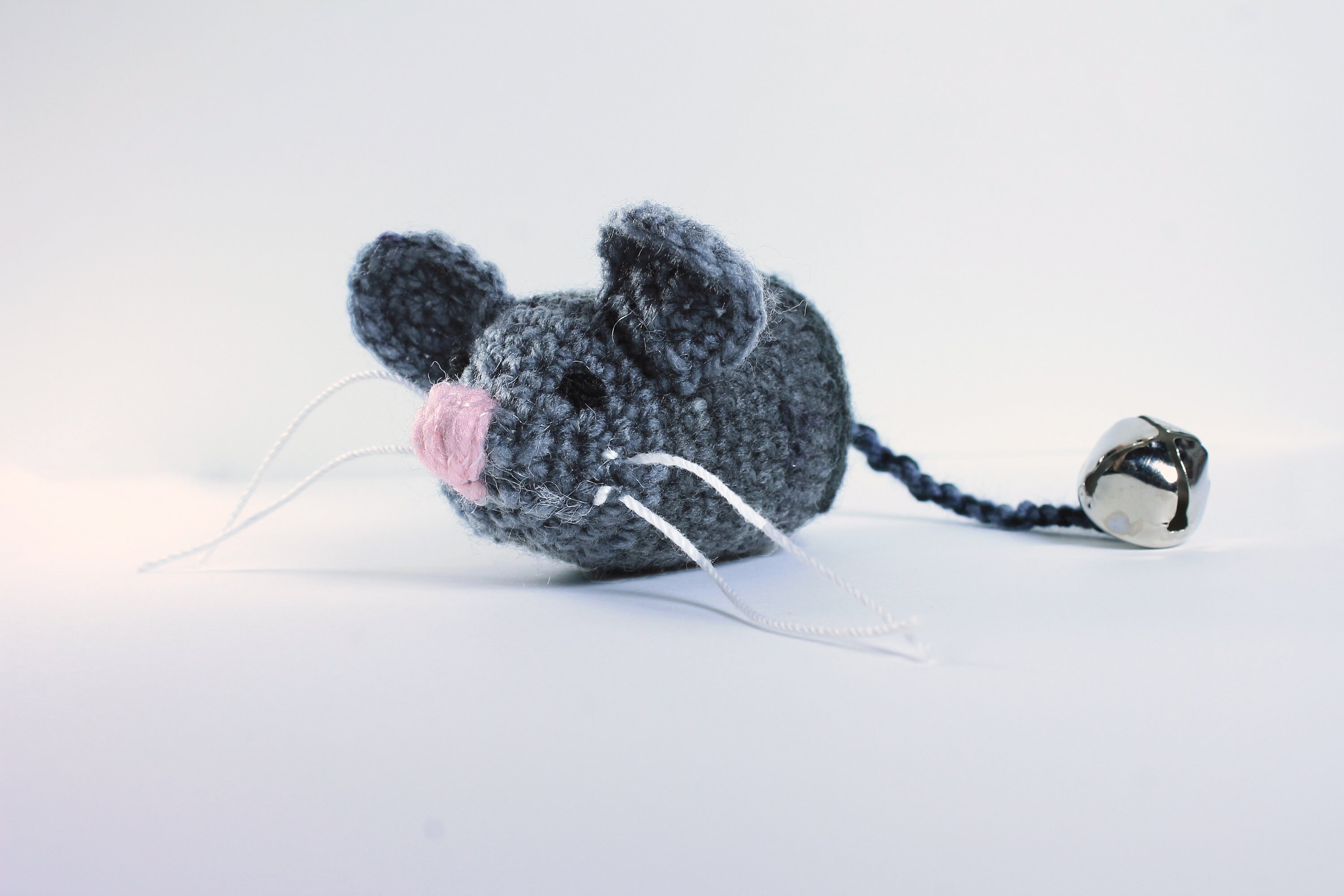 Cat Toy, Catnip Toy Mouse, Mouse With Bell, Gray, Crocheted, Pet Toy, Organic Cat Nip, Pet Accessory