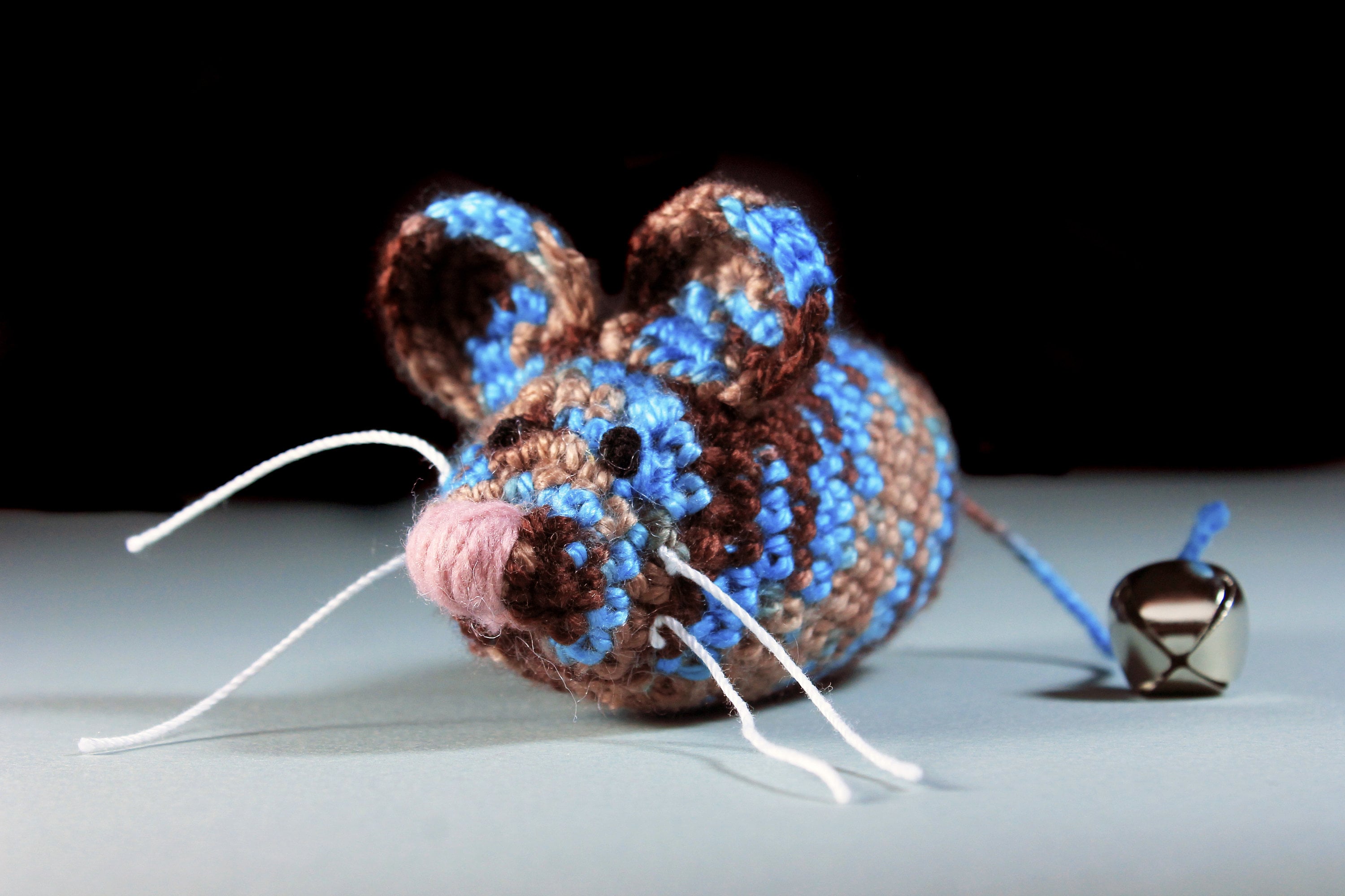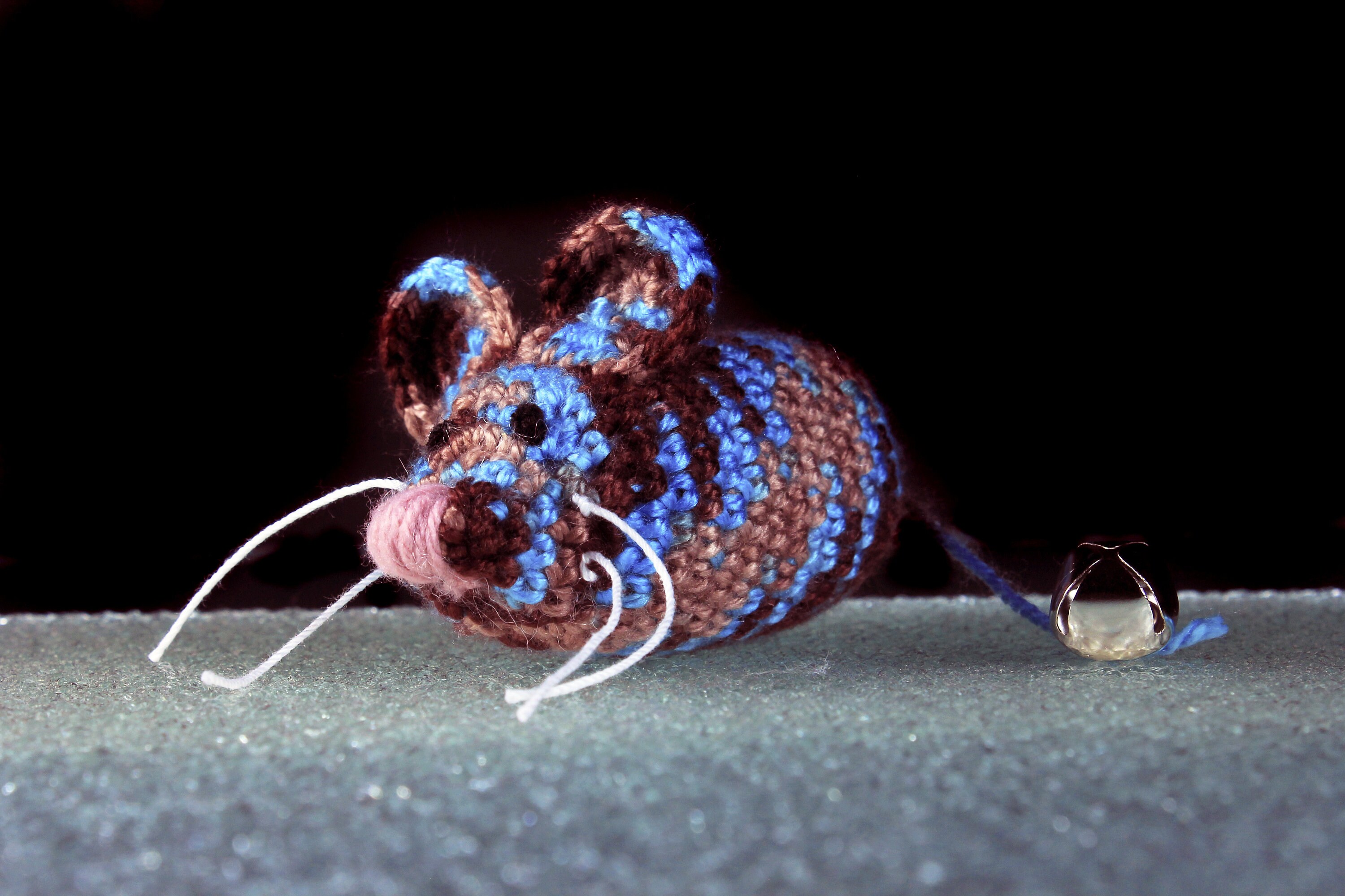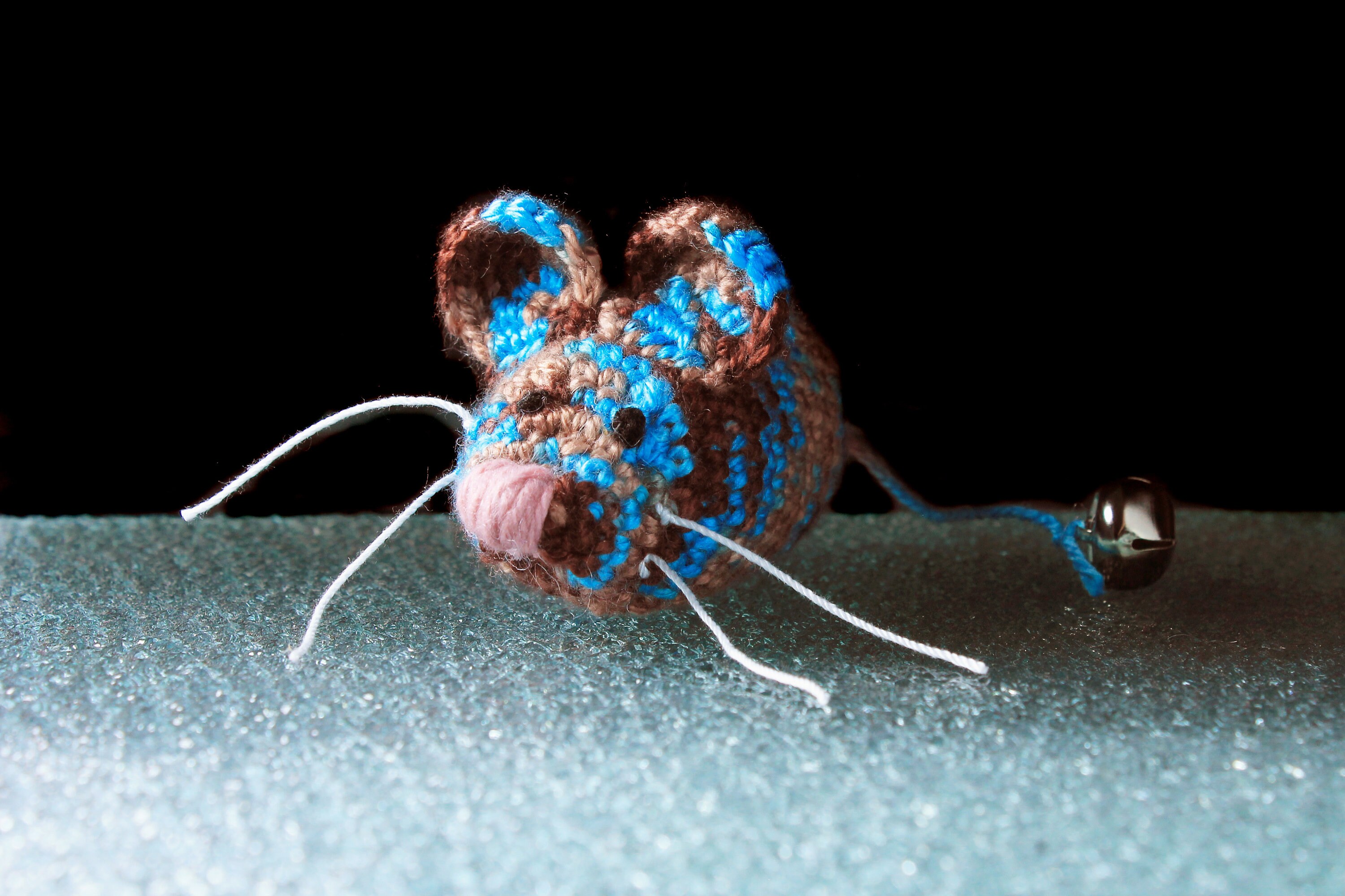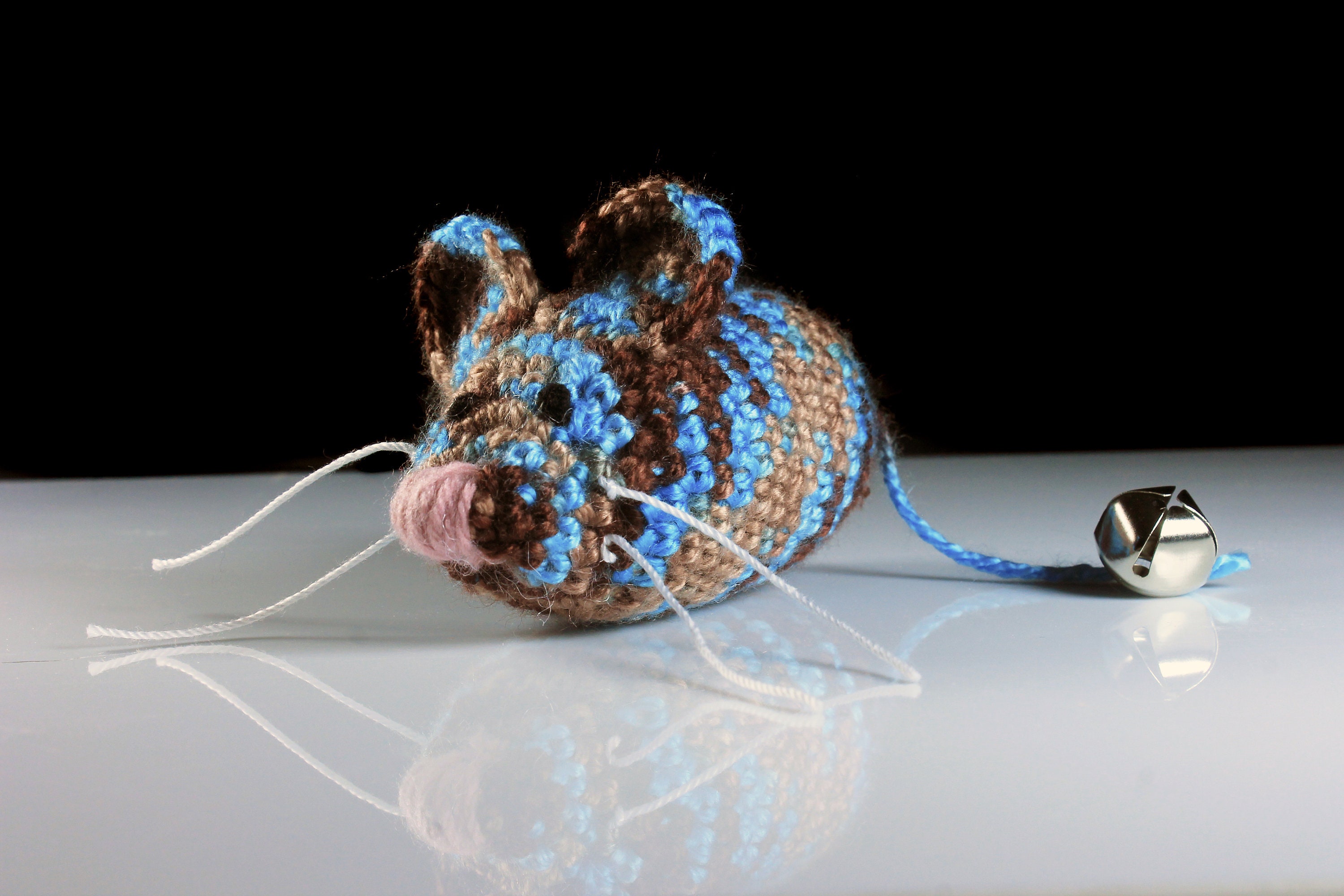Catnip Toy Mouse, Mouse With Bell, Multicolored, Crocheted, Pet Toy, Organic Cat Nip, Pet Accessory