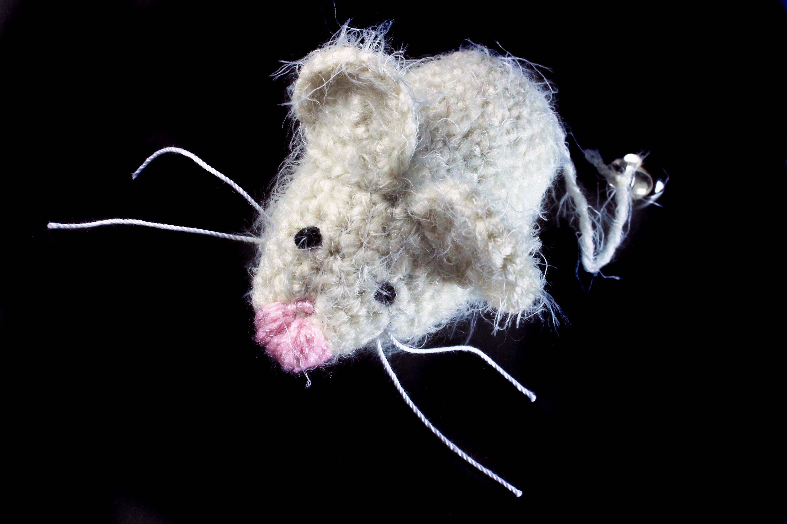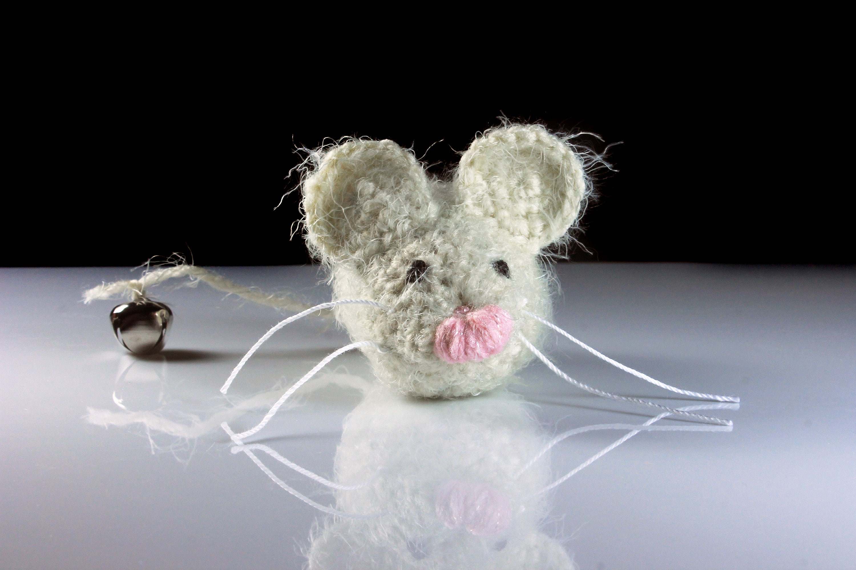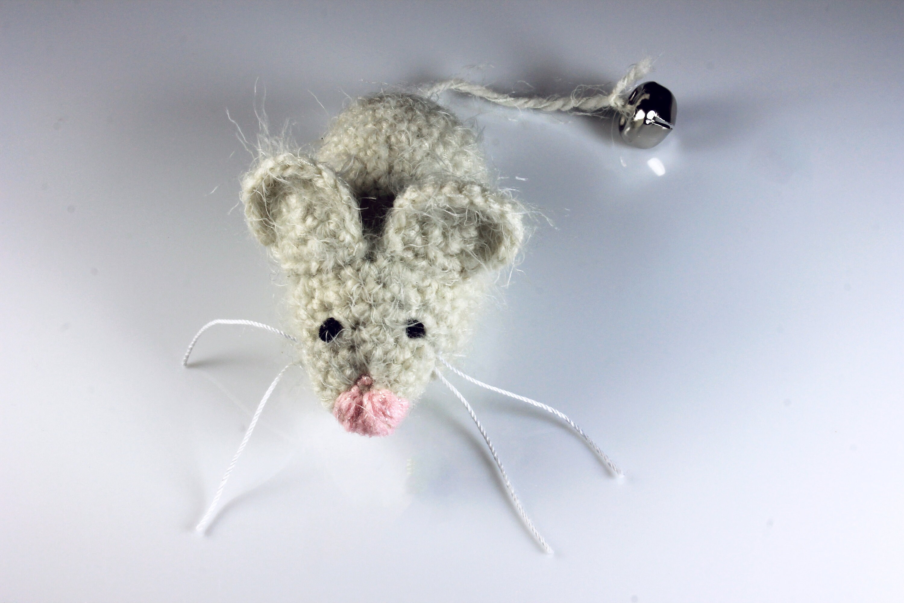 Catnip Toy Mouse, Mouse With Bell, Fuzzy Mouse Toy, Winter White, Crocheted, Pet Toy, Organic Cat Nip, Pet Accessory