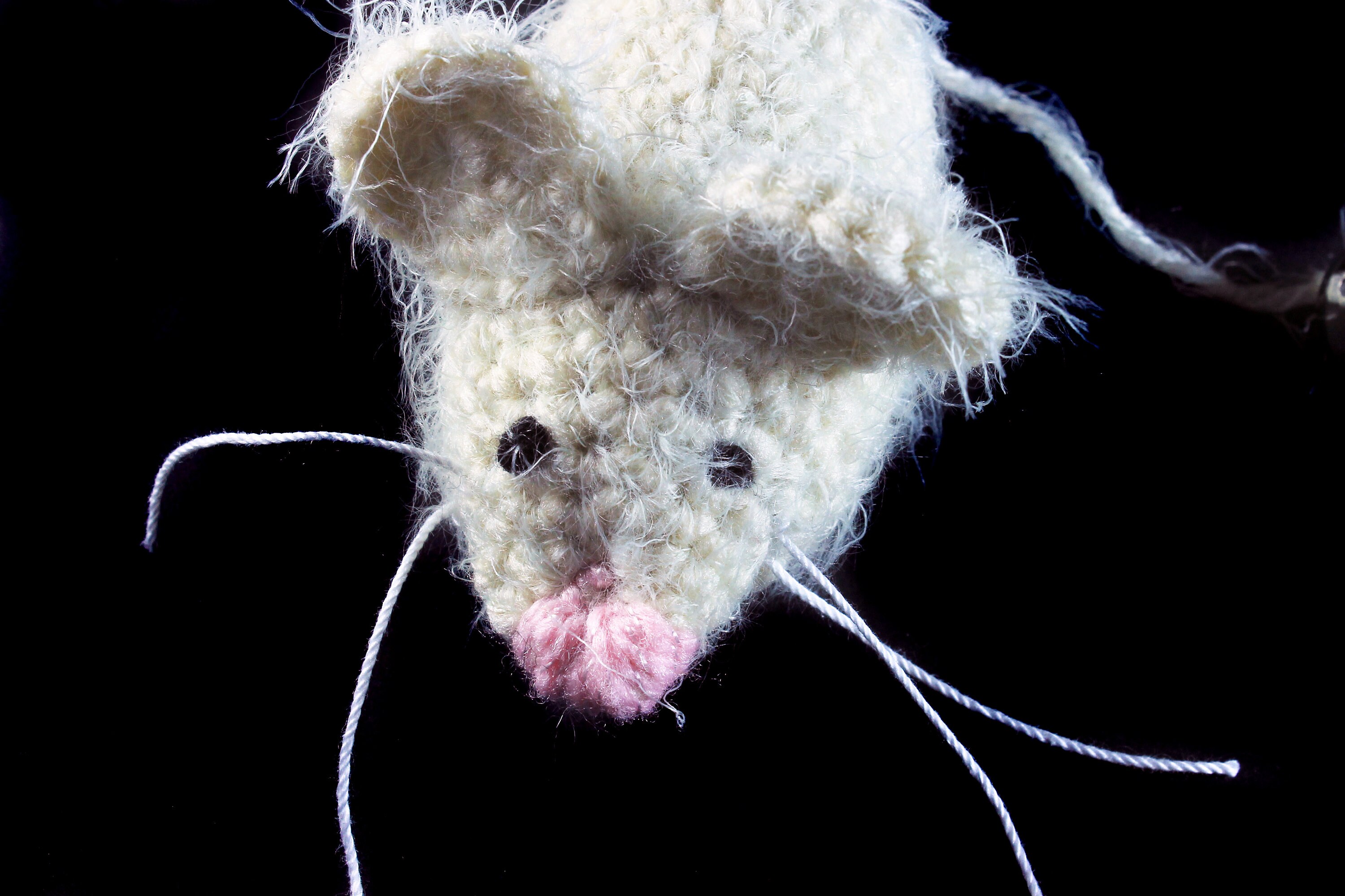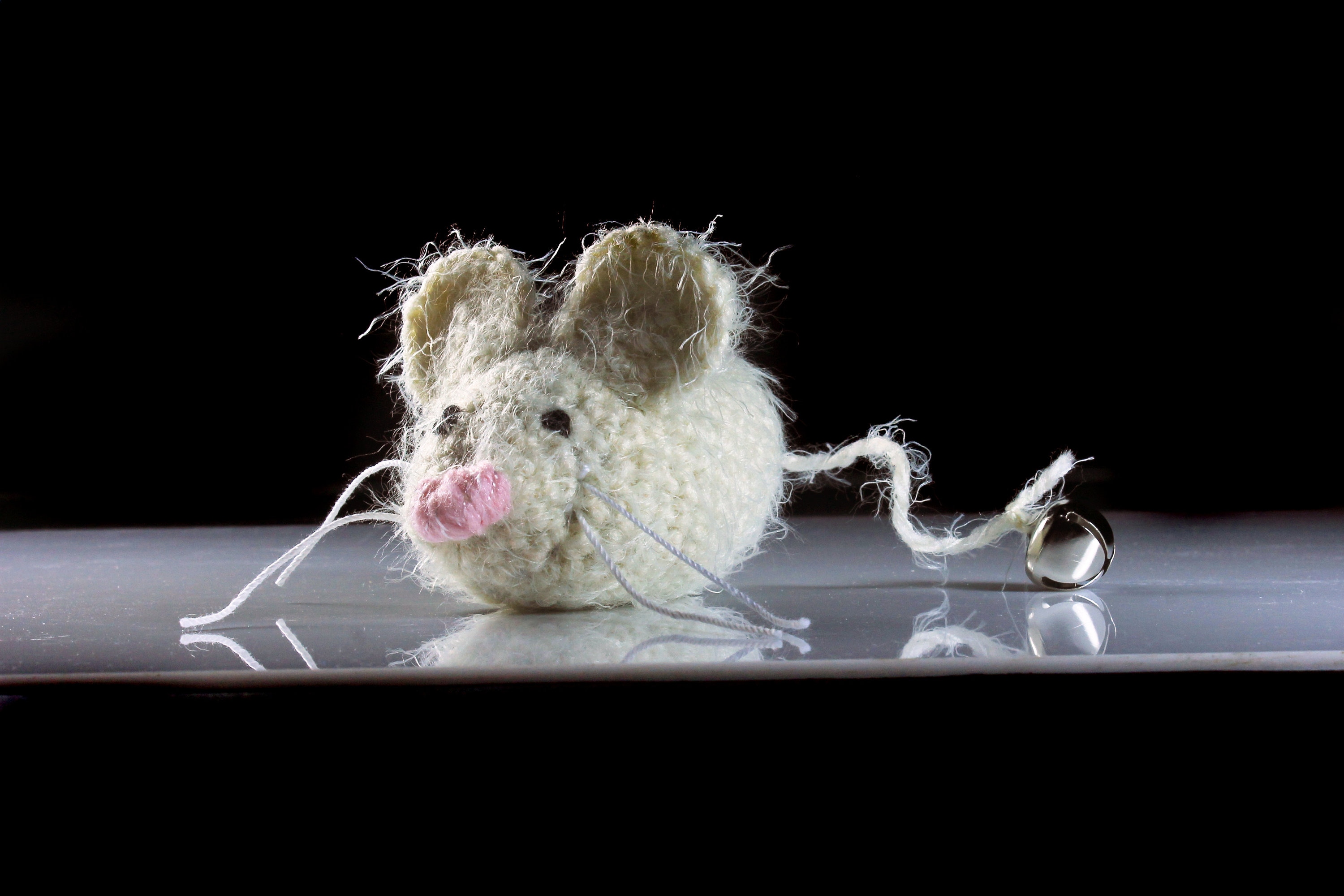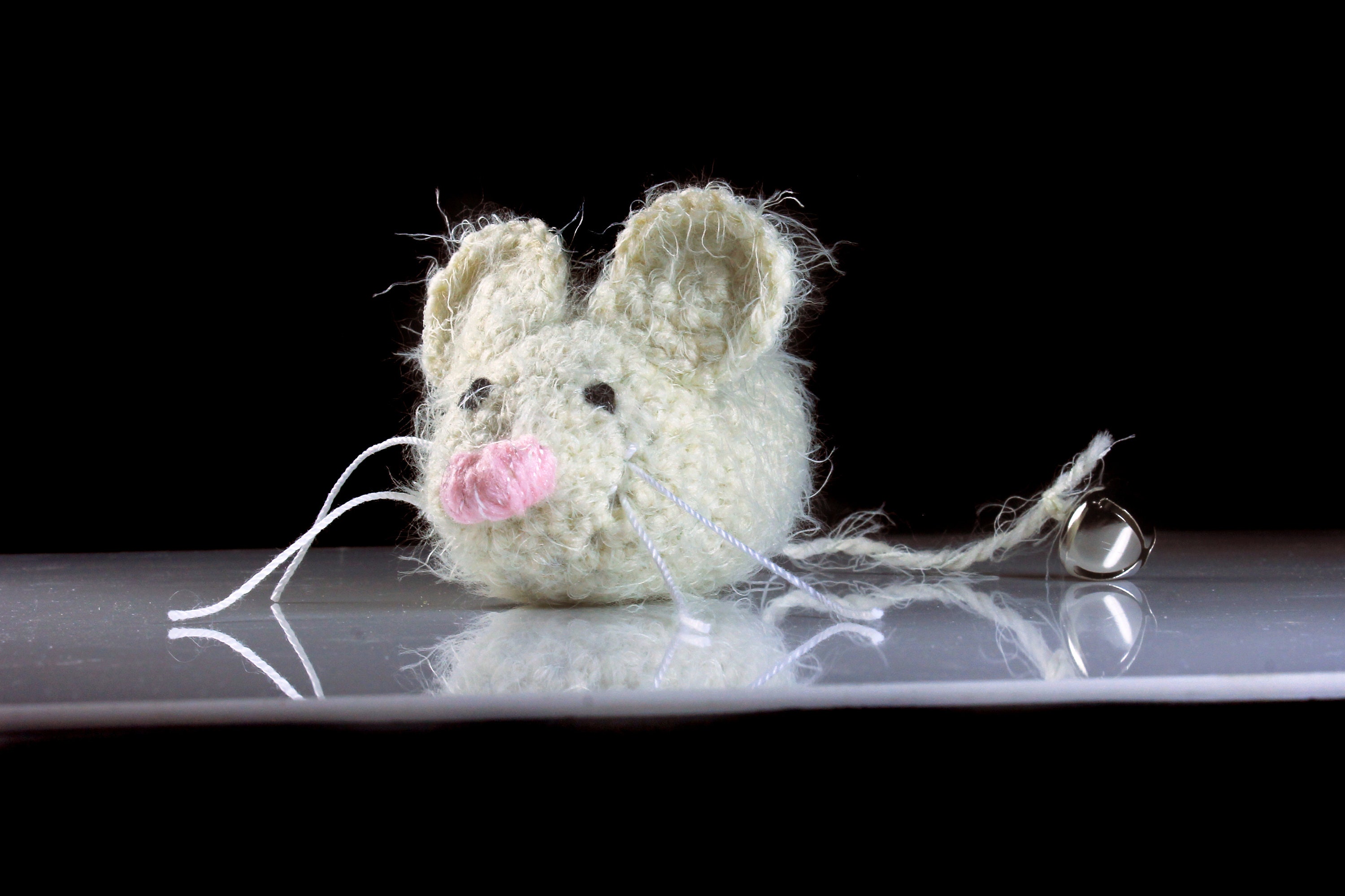 Catnip Toy Mouse, Mouse With Bell, Fuzzy Mouse Toy, Winter White, Crocheted, Pet Toy, Organic Cat Nip, Pet Accessory